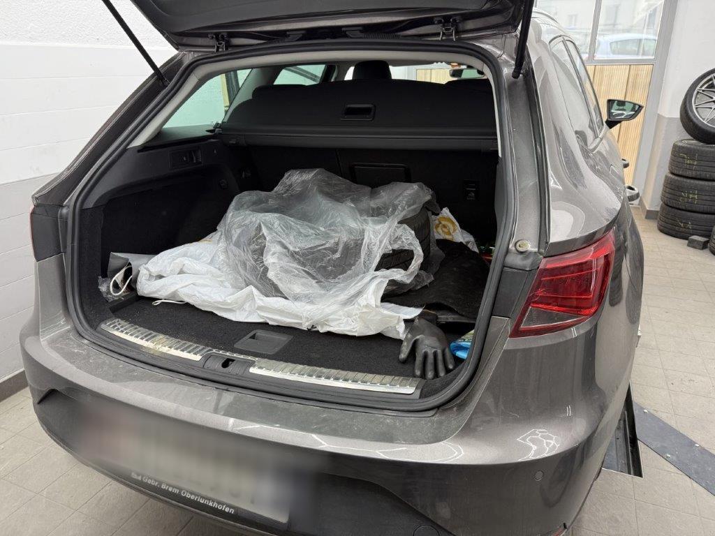 Seitenaufprall-Schutzsystem, Elektronische Traktionskontrolle (ASR/TCS), Gurte Höhenverstellbar vorne, Licht: Nebelscheinwerfer mit Cornering-Funktion, Kofferraumbeleuchtung, Pollenfilter (Staubfilter), Sitze: Fahrersitz höhenverstellbar, Klima: 2-Zonen-Klimaautomatik, Servolenkung, Lenkrad: Ledermultifunktionslenkrad, XDS inkl. Berganfahrassistent, Lenkrad längs- und höhenverstellbar, Media: Lautsprecher 8, Abgedunkeltes Scheibenglas (ab B-Säule), ISOFIX Kindersitzvorrichtung, Fahrwerk: Sportfahrwerk, Reifenpannen-Set (Tire Kit), Wärmeschutzverglasung, Gurtstraffer mit Gurtkraftbegrenzer vorne, Airbag: Knie-Airbag für Fahrer, Einstiegsleisten in Aluminium, Teppichfussmatten vorne und hinten, Licht: Nebelschlussleuchte, Assist: Tempomat, Schalthebelknauf in Leder, Polster: Stoff-Ausstattung, Aussentemperaturanzeige, Kopfstützen hinten (3), Leuchtweitenregulierung von innen, Heckscheibenheizung, Analog-Uhr, Kopfstützen vorne höhenverstellbar, Handschuhfach Beleuchtet, Sitze: Sportsitze vorne, Partikelfilter und Oxydationskatalysator, Wassertemperaturanzeige, Licht: Halogenscheinwerfer, Aussenspiegel und Türgriffe in Wagenfarbe, Radio CD-Player, MP3, Licht: Bremslicht Drittes, Getönte Scheiben, Sitze: Rücksitzlehne abklappbar, Räder: 4 Leichtmetallfelgen 17J mit Pneu, Zentralverriegelung mit Fernbedienung, ABS, EBD elektronische Bremskraftverteilung, Dachreling silber, Licht: Tagfahrlicht, Getriebe: Sequentielles 6-Gang-Getriebe mit Automatikfunktion Automatikfunktion, Licht: LED Heckleuchten, Auspuffanlage mit 2 Endrohren, Sitze: Beifahrersitz höhenverstellbar, Aussenspiegel rechts und links beheizt, elektrisch verstell-/ und einklappbar, Abdeckung unter dem Fahrersitz, Sitze: Rücksitzlehne mit Fernbedienung aus Kofferraum, Sitze: Mittelarmlehne hinten, Airbag: Seitenairbag für Fahrer und Beifahrer, Licht: Coming-home-Funktion, Gurtkontrolle, Cupholder vorne, Airbag: Fahrer und Beifahrer Airbag, 5'' Farbdisplay Touchscreen, Seitenschutz-Zierleisten, Ambientes Licht, Media: DAB+ (Digital Audio Broadcasting), Aussenspiegel mit LED Blinker, Bluetooth-Schnittstelle, Sitze: Mittelarmlehne vorne, Wegfahrsperre elektronisch, Elektronisches Stabilitäts-Programm (ESP) mit Reifendruckkontrolle, Bremsassistent (BAS) und Sperrdifferential, Tankdeckel-Entriegelung von innen, Heckscheiben-Wisch-Waschanlage mit Intervall, Stop/Start-Technologie, 3-Punkt-Sicherheitsgurte auf allen Plätzen, Elektrische Fensterheber vorne und hinten mit Komfortbetätigung und Einklemmschutz, Kreuzstütze für Fahrersitz verstellbar, Airbag: Window-Kopfairbags vorne und hinten, SEAT Media System Color, 12-Volt-Steckdose vorne, Doppelscheinwerfer, Media: USB-Anschluss, Airbag: Beifahrerairbag deaktivierbar, Tageskilometerzähler, Laderaumabdeckung, Sonnenblende Fahrer und Beifahrerseite mit beleuchtetem Spiegel, Bordcomputer