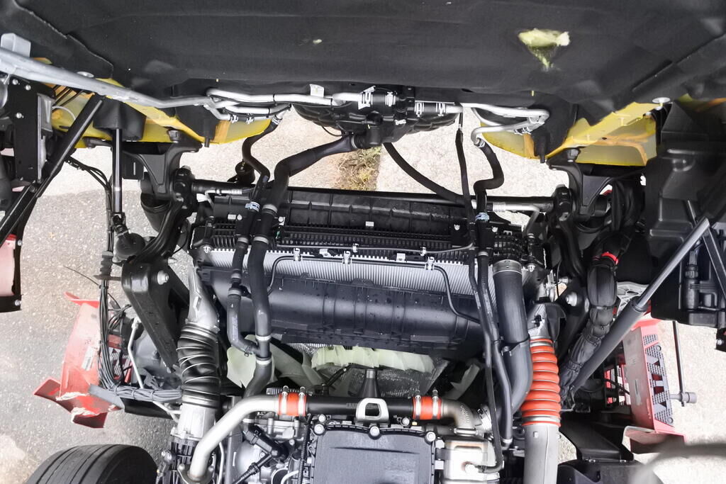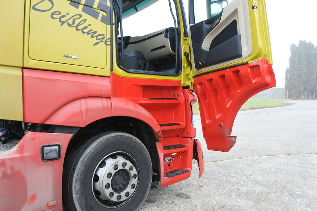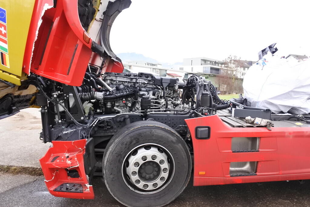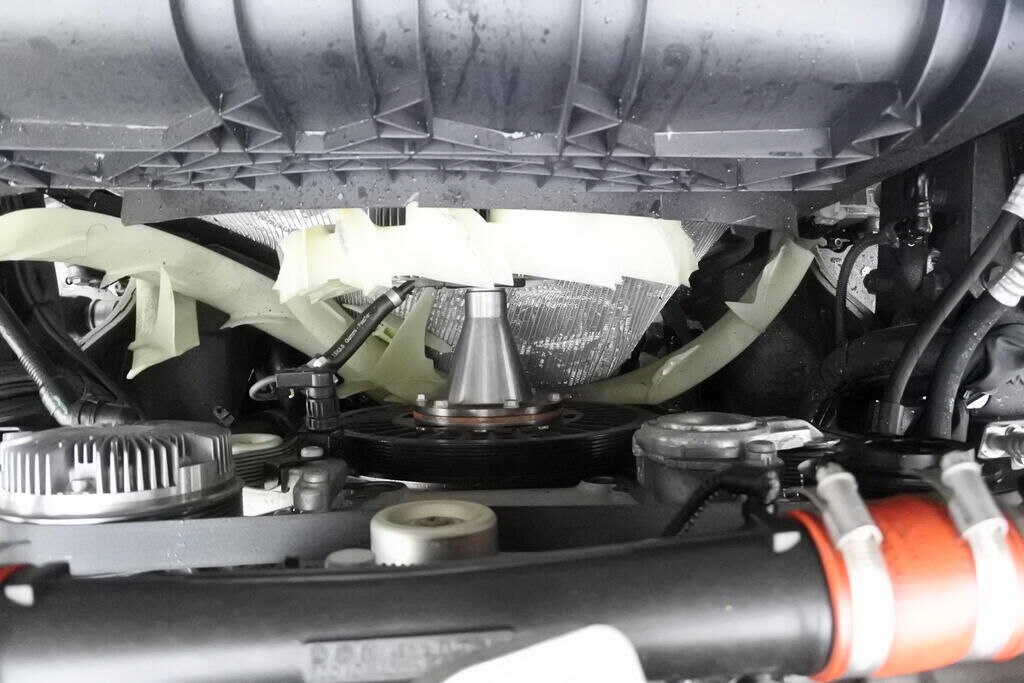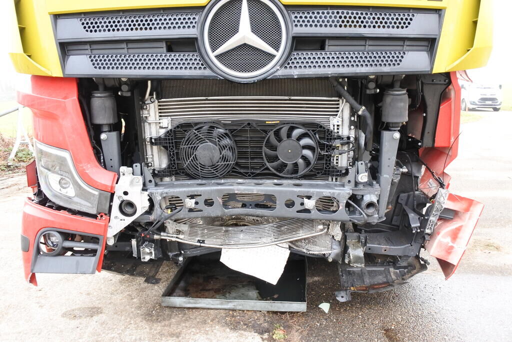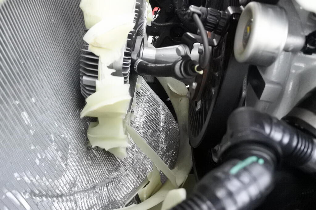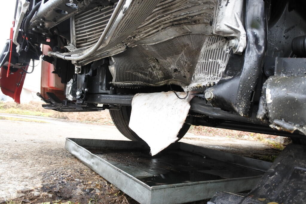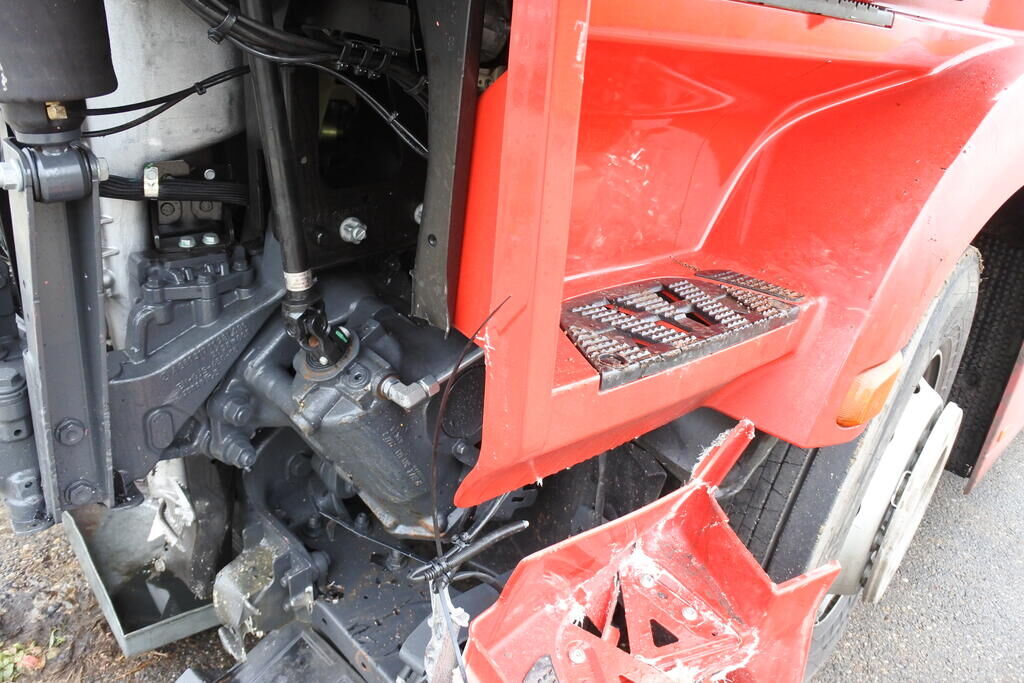 Die Stossstange mit Verstärkung, Querträger, Halter und beide Ecken mit Nebellampen, beide Scheinwerfer mit Blenden, die Quertraverse mit Aufnahmen, die gesamte Kühlanlage mit Ventilation und Luftführungen, der Grill, der Einstieg links, beide Türverlängerungen, beide Türrahmen, die Beifahrertür, der Aufprallträger mit Halterung, beide Gussstreben unten sind beschädigt. Beide Chassisköpfe weisen Verformungen/verdrehungen auf. Risiko Motor, Kühlanlage wurde auf Kurbelwelle gedrückt.