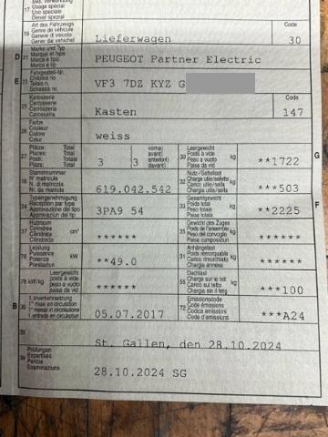 Wichtige HinweiseZustandFahrzeug muss transportiert werden [Höhe und Breite beachten]. Fahrzeug ist NICHT fahrbar. Fahrzeug ist rollbar. Batterie leer. Bereifung Fahrzeug wird mit Winterräder abgegeben. Hochvoltfahrzeug Zum Zeitpunkt der Prüfung ging von der Batterie keine Brandgefahr aus. Die geforderten Sicherheitsbestimmungen sind zwingend vom Käufer einzuhalten. Hochvoltsystem ist abgeschaltet und spannungsfrei Weitere wichtige Hinweise Hochvolt System durch die Airbag Auslösung deaktiviert! BeschädigungenFront Front eingedrückt. Frontblech/Maskenblech eingedrückt. Fahrzeugvorbau verschoben. Motor Alle Kühler vorne sind eingedrückt. Elektrik Risiko Steuergeräte. Innenraum Gurtstraffer ausgelöst. Beschädigungen Sonstige Schäden Div.Carrosserie Teile sind leicht beschädigt. Div. Roststellen am Fahrzeug. Hochvoltfahrzeug Keine sichtbaren Schäden am Antriebsakku Weitere Beschädigungen Seitenscheibe vorne links funktioniert nicht mehr, Fahrzeug abgeschalten durch Airbag Auslösung. Gurtstraffer vorne ausgelöst! AusstattungSerienaustattung Airbag Fahrerseite ABS Antiblockiersystem Servolenkung Elektronische Wegfahrsperre Schiebetüre rechts verblecht Fahrersitz verstellbar Beifahrer Einzelsitz Sitzbezüge in Stoff Heck-Flügeltüren verblecht 180° Ablagefach im Dach Geschwindigkeitsbegrenzer ESP + ASR + Hill Holder Automatische Türenverriegelung beim Fahren Pack Plus Schublade unter Fahrersitz Laderaumabdeckung in PVC WIP Sound Pack Confort Keine Gewähr auf die Angaben der Serienausstattungen SonderausstattungAussenspiegel elektrisch verstellbar/ heizbar und anklappbar Heck-Flügeltüren verglast 180°/ Heizung / Scheibenwischer Trennwand halbhoch WIP Bluetooth Ladesteckdose zur Schnellladung Ausstattung Sommer-Reifen [OHNE Felgen] Sonstige Ausstattung und Zubehör Beifahrersitz Multiflex, Holzboden, Schiebetür rechts verglast. |