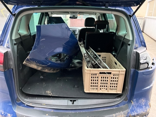 Wichtige HinweiseDemontagePersönliche Gegenstände oder Ladegut im Fahrzeug werden entfernt. Zustand Fahrzeug ist fahrbar. BeschädigungenLinks Linke Seite beschädigt. Rechts Rechte Seite beschädigt. Front Front eingedrückt. Heck Heck eingedrückt. Achse Risiko Vorderachse. Risiko Hinterachse. Risiko Lenkung. Motoraufhängung/Aggregateträger ist beschädigt. Elektrik Risiko Steuergeräte. Kabelstränge verbrannt, beschädigt, abgerissen. Unterboden Bodengruppe verzogen/beschädigt. Beschädigungen Unterboden stark verschmutzt. Sonstige Schäden Div.Carrosserie Teile sind leicht beschädigt. AusstattungSerienaustattung Airbag Fahrer und Beifahrerseite Elektrische Fensterheber vorne Bordcomputer ABS Antiblockiersystem Sportfahrwerk Seitenairbag Fahrer und Beifahrerseite Nebelscheinwerfer vorne Zentralverriegelung mit Fernbedienung Lederlenkrad Mittelarmlehne vorne Lenkrad verstellbar Kopfairbag vorne und hinten Elektrische Fensterheber hinten Reifendruck-Kontrollsystem RDK Gepäckraumabdeckung Radiobedienung am Lenkrad Kindersitz-Vorbereitung Isofix FlexSpace Sitzsystem Elektronischer Geschwindigkeitsregler Bremsassistent EBA Park-Pilot vorne + hinten Dachreling silber Berganfahrassistent HSA Pack Sicht ESP Elektr. Stabilitätsprogramm/ TcPlus/ CBC Aussenspiegel elekt. verstellbar/ heizbar manuell anklappbar 12 V Steckdose im Laderaum Dunkelgetönte Heck- und Seitenscheiben hinten Servolenkung geschwindigkeitsabhängig Zweizonen Klimaautomatik Leichtmetallfelgen 17" Multi-Speichen Stop + Start System LED Heckleuchten Keine Gewähr auf die Angaben der Serienausstattungen Lounge Sitz Konfiguration 2. Reihe Onstar Radio/ DAB/ Bluetooth/ USB SonderausstattungAnhängevorrichtung mit abnehmbarem Kugelkopf Brillant-Lackierung Reifen-Pannenset Rückfahrkamera Opel FlexCare Basic 4. Jahr/ 60'000 km Pack Park & Go Technology Sonstige Ausstattung und Zubehör Keine Gewähr auf die Angaben der Serie- und Sonderausstattung |