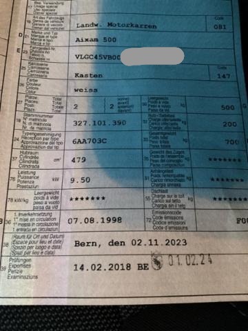 | Typenschein-Nr: | 6AA703 | Letzte MFK: | 01.02.2024 |