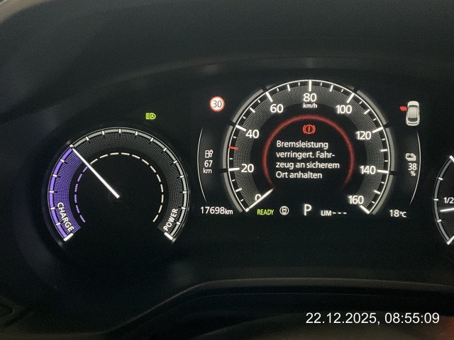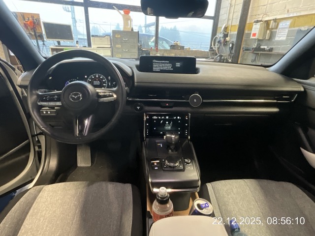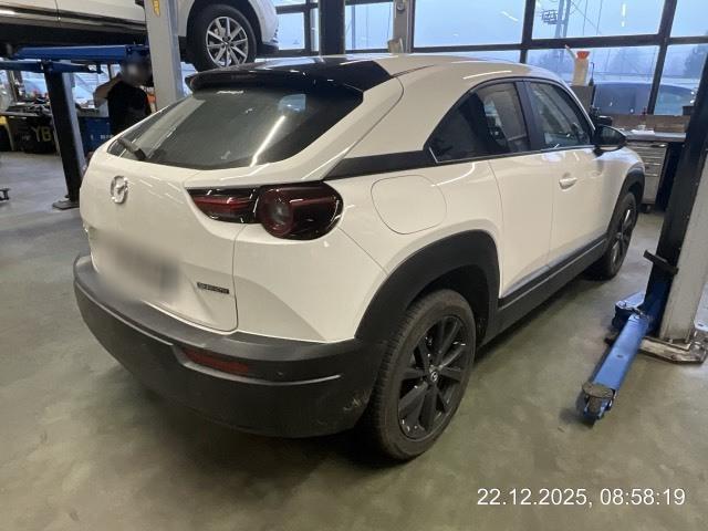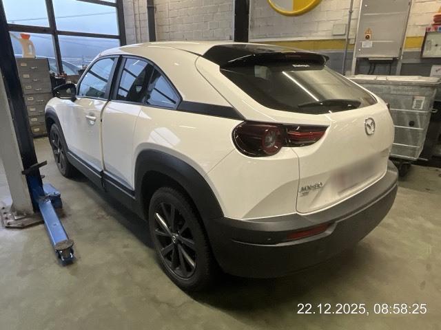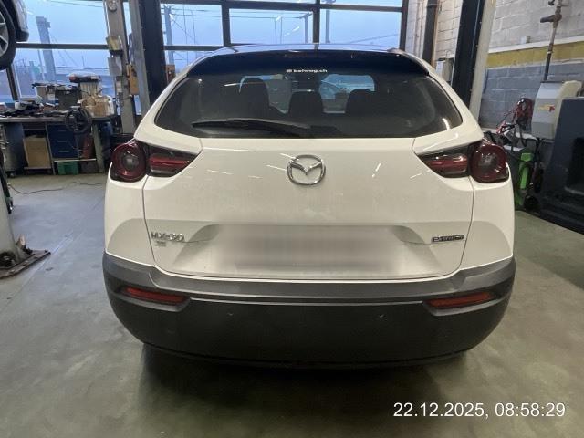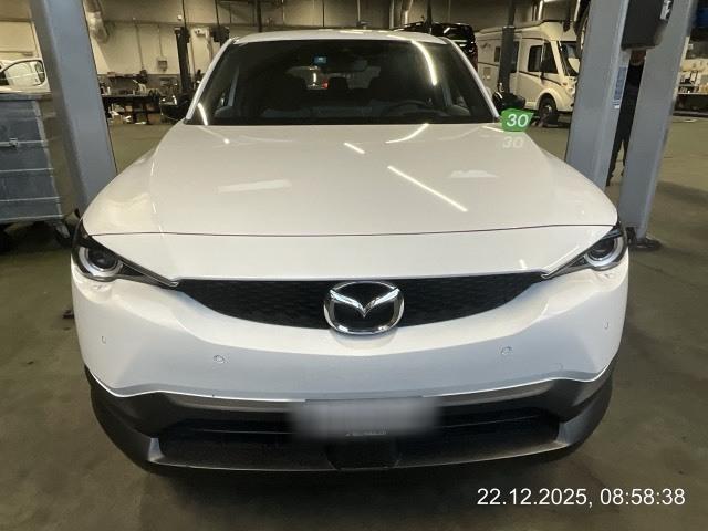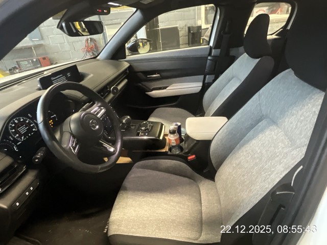 Assist: Verkehrszeichenerkennung TSR, (Traffic Sign Recognition), erfordert Navigationssystem, Media: 8 Lautsprecher, Ladeanschluss Typ 2 (AC) und CCS Combo (DC Schnelllader), Licht: Tagfahrlicht, Licht: Drittes Bremslicht, Dekor: Applikationen aus echtem Kork, Assist: Rückfahrkamera, Assist: Tempomat, Sitze: Vordersitze heizbar, Klima: Klimatisierungsautomatik, Getriebe: 1-Gang-Getriebe, Media: 7'-Touchscreen-Display für die Klimakontrolle, Servolenkung, Media: Apple CarPlay und Android Auto, Assist: G-Vectoring Control Plus (e-GVC Plus) die Fahrdynamikregelung für elektrische Fahrzeuge von Mazda, Licht: Voll-LED-Scheinwerfer mit Fernlichtautomatik HBC (High-Beam Control), Media: USB+AUX-Anschluss, Assist: Spurhalteassistent LAS (Lane-keep Assist System) mit aktiver Lenkunterstützung, Airbag: Window-Kopfairbags, Zentralverriegelung mit Fernbedienung, Keyless Entry, Airbag: Fahrer-Knie-Airbag, Media: Bluetooth-Schnittstelle, Assist: Spurwechselassistent BSM mit Totwinkelwarner und aktiver Lenkunterstützung, 3-Punkt-Sicherheitsgurte auf allen Plätzen, Airbag: Seitenairbags vorne, Polster: Stoff-Ausstattung, Assist: Einparkhilfe hinten, Assist: Antiblockiersystem (ABS), Lenkrad: Lenkrad beheizbar, Sitze: Rücksitzlehnen getrennt abklappbar 60:40, Aussenspiegel automatisch abblendend, Innenspiegel automatisch abblendbar, Media: Zweiter USB-Anschluss, Media: Head-Up Display, Media: MZD Connect mit 8,8'-TFT-Farbdisplay und Multi Commander HMI auf der Mittelkonsole, Assist: Kreuzungs-Notbremsassistent (Turn-Across Traffic), Soundgenerator mit natürlichem, aktivem Fahrgeräusch (ICE Sound Emulator), Sitze: Beifahrersitz höhenverstellbar, Assist: Dynamische Stabilitätskontrolle DSC und Traktionskontrolle TCS, Assist: Elektronische Parkbremse mit Auto-Hold-Funktion und Berganfahrhilfe, Assist: Adaptive Geschwindigkeitsautomatik MRCC (Mazda Radar Cruise Control) mit Stop & Go-Funktion, Assist: Notbremsassistent SBS (Smart Brake Support) mit Fussgängererkennung, Media: Audiosystem, Sitze: Kopfstützen vorne höhenverstellbar, Media: Navigationssystem, Ladekabel Typ 2 Mode 3 (empfohlene Lademethode) und Mode 2 (230V) mit In-Cable Control Box (ICCB), Drehzahlmesser, Bordcomputer, Media: Instrumentenanzeige mit 7'-TFT-Multidisplay, Assist: Einparkhilfe vorne, Assist: Aufmerksamkeitswarner DAA (Driver Attention Alert), Media: 150W-AC-Anschluss, Wegfahrsperre elektronisch, Räder: Leichtmetallfelgen 18" Farbe Silver 215/55 R18, Lenkrad und Schalthebelgriff in Leder, Licht: Lichtautomatik, Heckscheiben-Wisch-/Waschanlage, LED Innenraumbeleuchtung, eCall, Räder: Reifenreparatur-Set (Tire Fit), Sitze: ISOFIX Kindersitzvorrichtung, Aussenspiegel elektrisch verstellbar, beheizbar und elektrisch einklappbar, Heckscheibenheizung, Start-/Stop-Knopf, Sitze: Kopfstützen hinten, Media: Digitaler Radioempfang (DAB/DAB+), Scheibenwischer mit Regensensor und integrierter Waschdüse mit Enteiser-Funktion, Airbag: Airbag Fahrer und Beifahrer, Licht: Nebelschlussleuchte, Licht: LED-Rückleuchten, Elektrische Fensterheber vorn mit Automatikfunktion, Lenkrad: Lenkradwippen für die Wahl der Energie-Rekuperationsstufe, Räder: Reifendruckkontrollsystem, Garantie: 3 Jahre/100'000 km - Batterie 8 Jahre/160'000 km, Lenkrad: Multifunktionslenkrad, Mittelarmlehne hinten, Türen: Freestyle-Türen ohne Mittelsäule, Alarmanlage, Licht: Scheinwerfer mit Coming-/Leaving-Home-Funktion, Mittelarmlehne vorne, Aussenspiegel in Brilliant Black