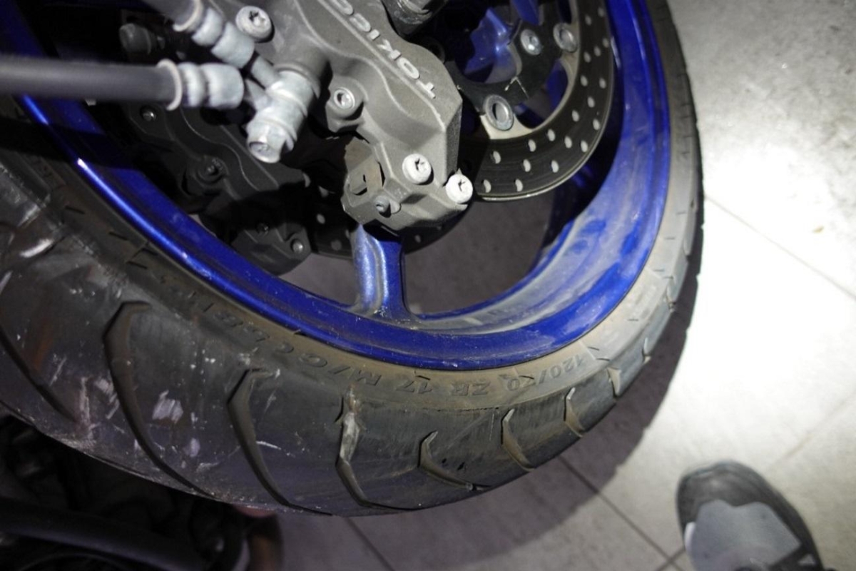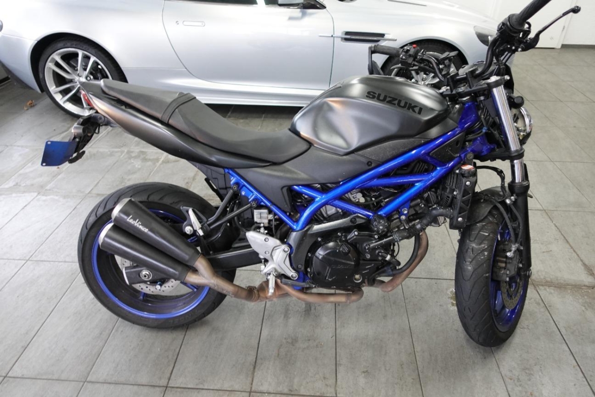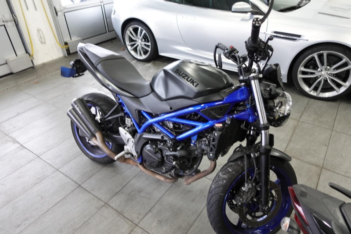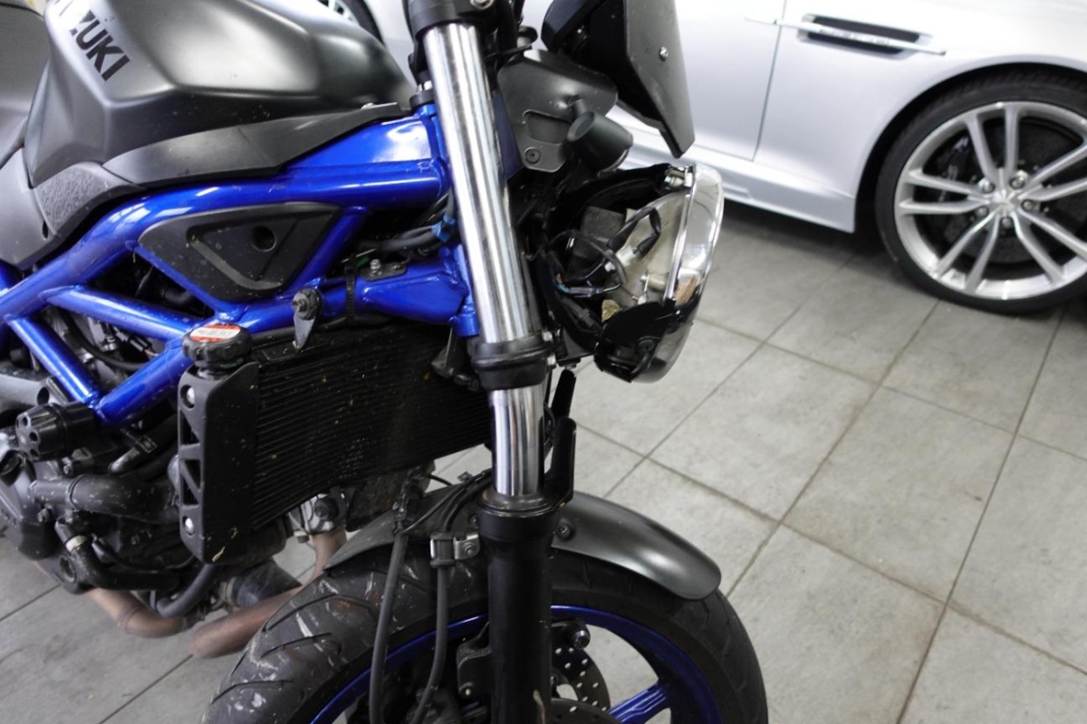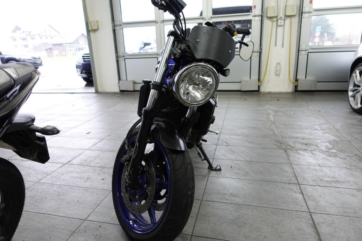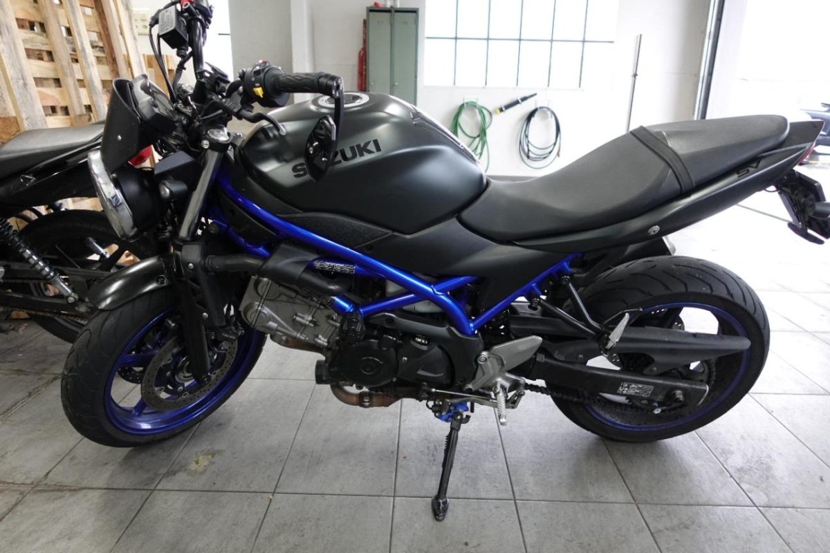 Auspufftopf, Aussenspiegel links, Aussenspiegel rechts, Front, Fussraster rechts, Gabelholm, Lenkanschlag, Lenker, Rad vorne, Rahmen, Scheinwerfer, Tank