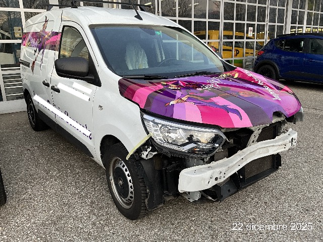 6 anelli di ancoraggio (piano del vano di carico), Airbag: Airbag conducente, Alzacristalli elettrici anteriori con la chiave ad alta velocità sul lato guida, Assist: Controllo elettronico della stabilità (ESC), controllo del sottosterzo, sistema antipattinamento, assistente per la partenza in salita e funzione Extended Grip, Assist: Sistema di frenata antibloccaggio con assistente alla frenata di emergenza, Assist:Ecall (Europa / Russia), Bordcomputer, Cambio: Cambio manuale a 6 marce, Cassetto portaoggetti aperto, Chiave telecomando, Chiusura centralizzata delle porte con telecomando, Clima: riscaldamento normale, interruttore dell'aria, Contagiri, Decor: Noir interno, Decor: Pedane laterali noir grainé, Funzione Start/Stop, Garanzia: Renault Garanzia 3 anni o 100'000 km - Servizio gratuito: 3 anni o 100'000 km (da 1a messa in circ.), Luce: ALS (sistema di illuminazione automatica), Luce: Luci diurne a LED, Luce: Terza luce di stop, Media: Radio Connect R&, Pannello sinistra lastrata, Paraurti e specchietti esterni noir grainé, Parete intera di separazione lastrata con finestra, Parete laterale e rivestimento del tetto, Pavimento in PVC nel compar. passeggeri, Poggiatesta anteriori, Porte: Porta scorrevole a destra, Porte: Porte posteriori asimmetriche laminate, Presa di corrente 12V, Rivestimento interno, Route: Coprimozzo medio Carten 15 ", Route: Indicatore di controllo della pressione dei pneumatici, Route: Set riparazione pneumatici (Tire Fit), Sedili: Pilota + copilota SBR (visual e acustica), ad eccezione di quella rimovibile sedile semplice, Sedili: Sedile conducente regolabile in altezza, Sedili: conducente standard, Senza specchietto panoramico, Servosterzo, Specchietti retrovisori esterni a rego- lazione elettrica, Tappezzeria: Equipaggiamento di stoffa, Vano portaoggetti nel tetto anteriore, Volante: Volante multifunzione in schiuma plastica, Zerbini di gomma nel compartimento di carico
