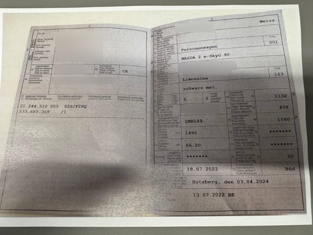 | Fahrzeugausweis | Vorhanden |