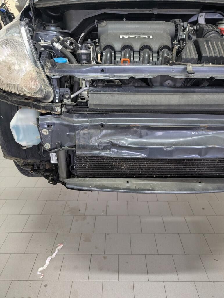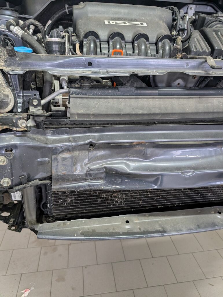 Pare-chocs, renforts pare-chocs, supports pare-chocs, aile avant droite, phare droite, façade avant, radiateur et condenseur endommagés |