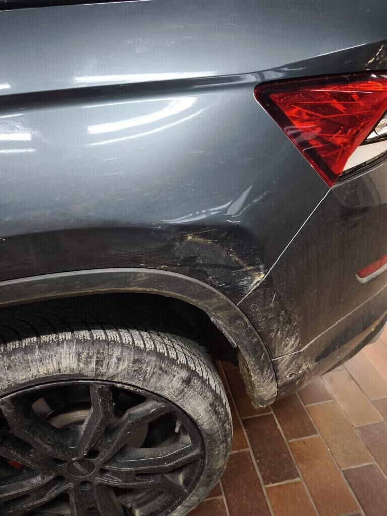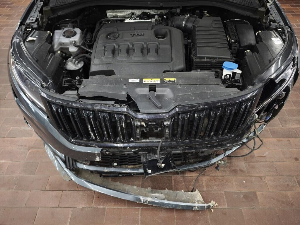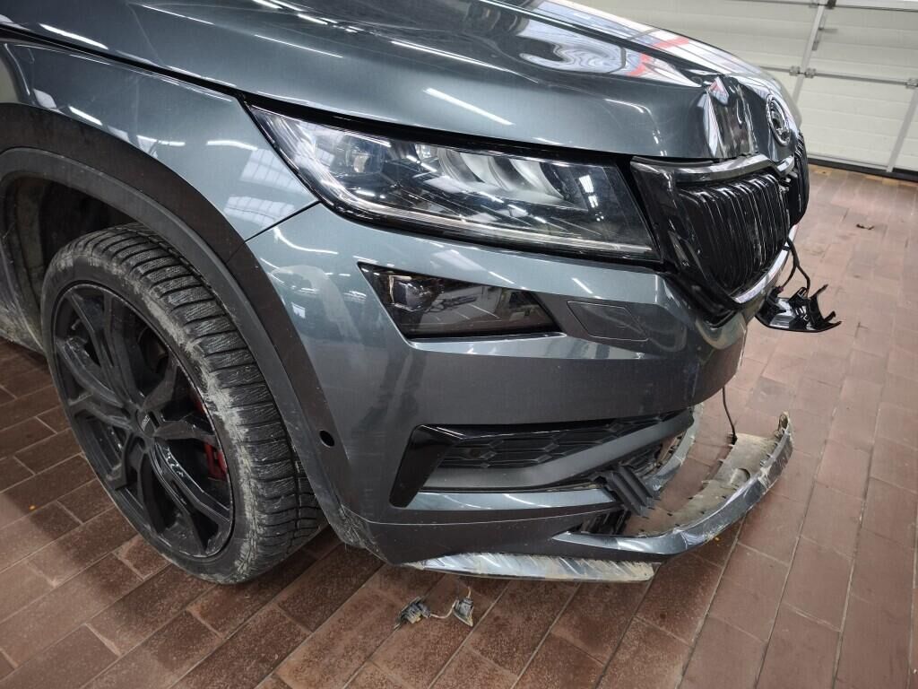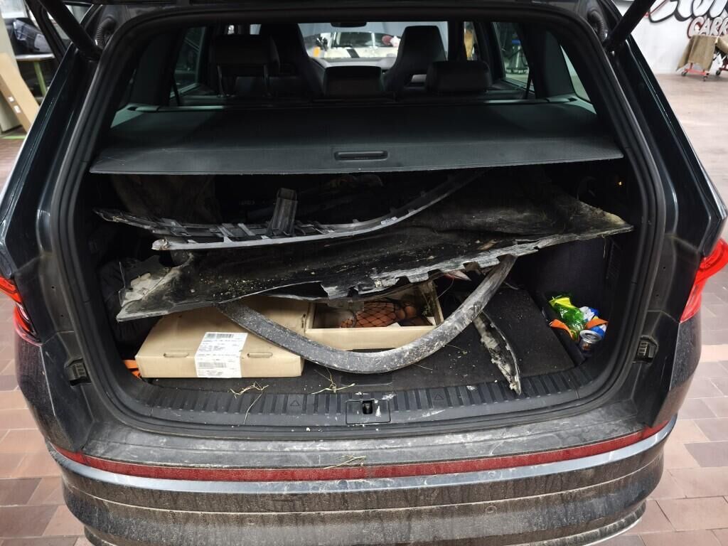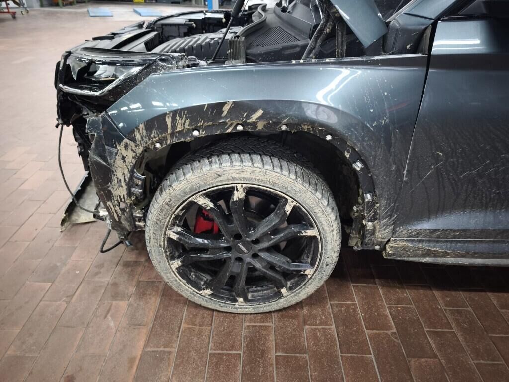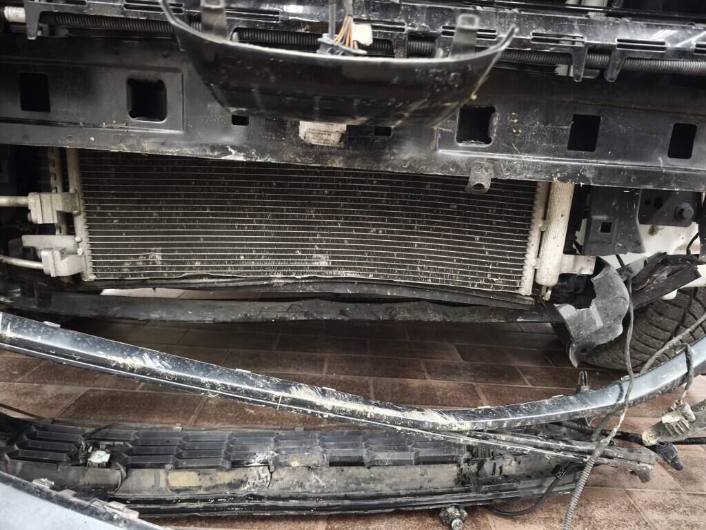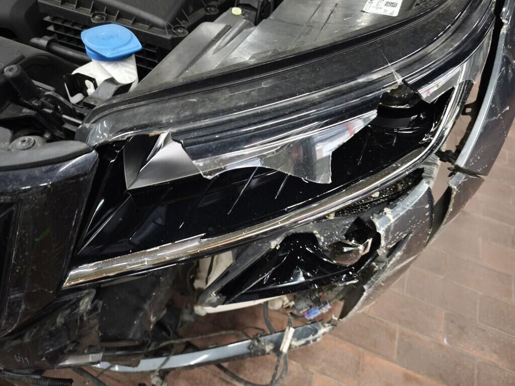 Capot moteur, calandre, pare-chocs avant, renfort de pare-chocs, tôle frontale, radiateurs, phares avant gauche, reserve sur le phare avant droite, aile avant gauche, flanc gauche, flanc droite, pare-chocs arrière gauche, feu arrière gauche, quatre jantes griffées, reserve sur la géométrie des roues, reserve sur le berceau moteur, échappement, totalité du planché endommagé et soubassement.