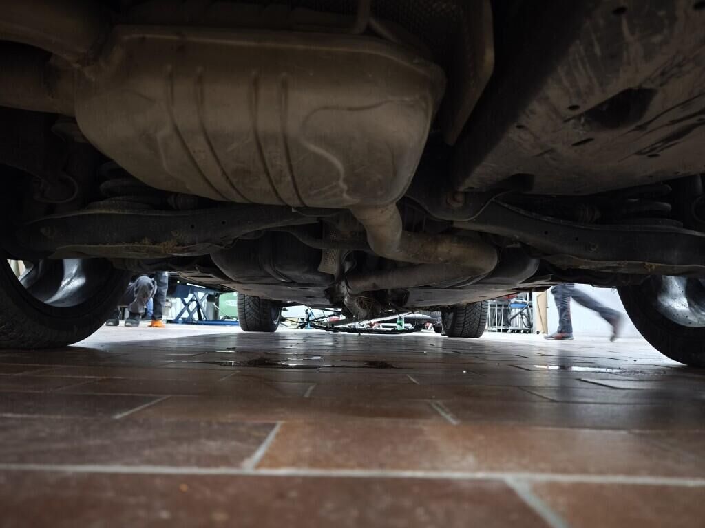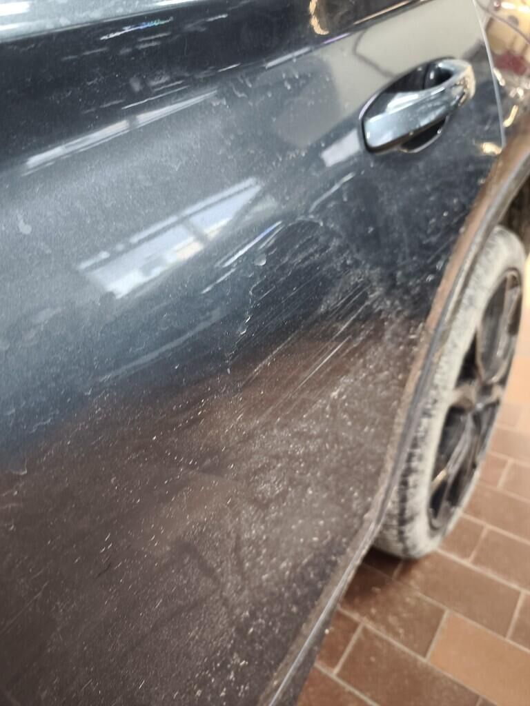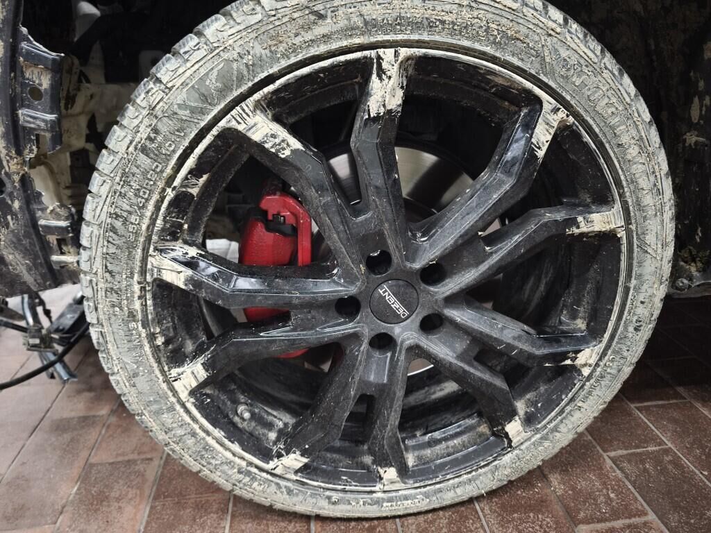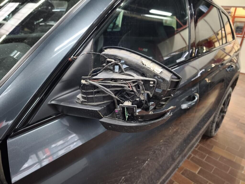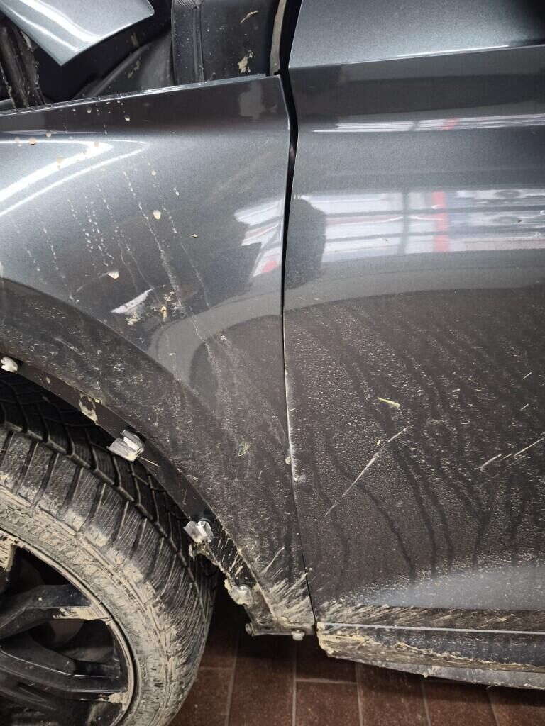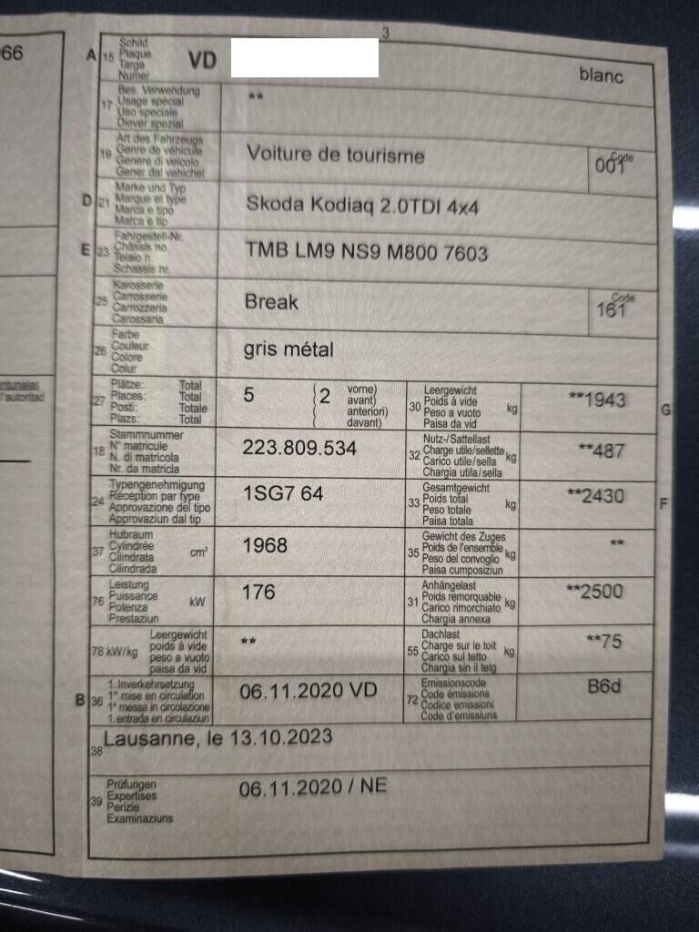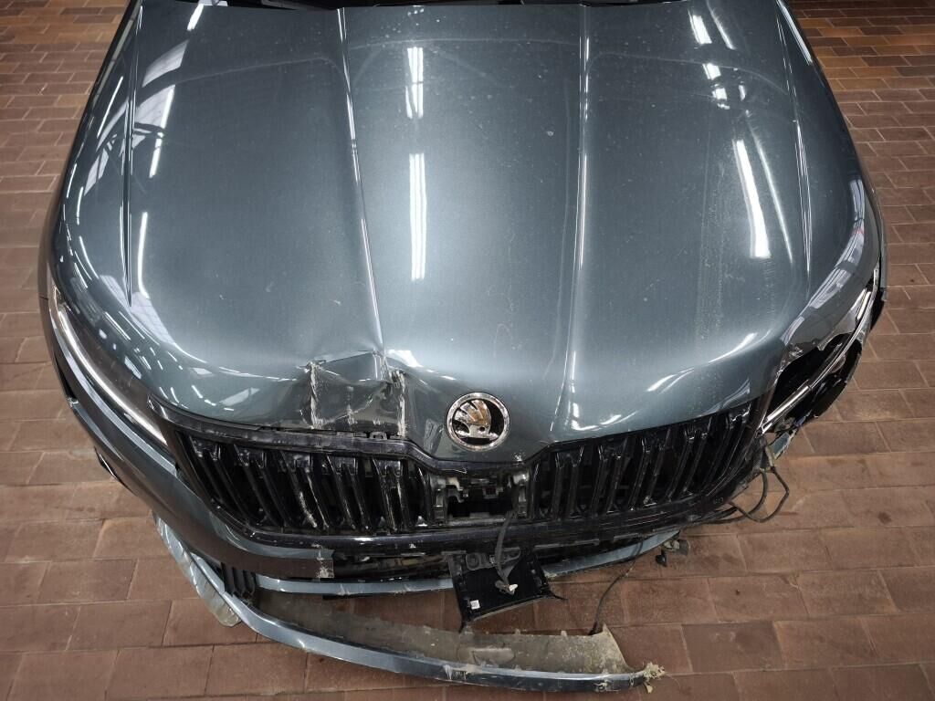 Capot moteur, calandre, pare-chocs avant, renfort de pare-chocs, tôle frontale, radiateurs, phares avant gauche, reserve sur le phare avant droite, aile avant gauche, flanc gauche, flanc droite, pare-chocs arrière gauche, feu arrière gauche, quatre jantes griffées, reserve sur la géométrie des roues, reserve sur le berceau moteur, échappement, totalité du planché endommagé et soubassement.
