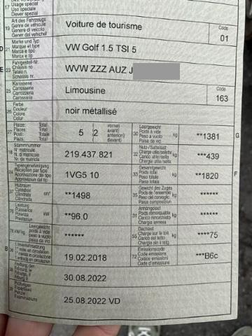 Wichtige HinweiseBeschädigungenFront Frontblech/Maskenblech eingedrückt. Motor Alle Kühler vorne sind eingedrückt. Sonstige Schäden Div.Carrosserie Teile sind leicht beschädigt. AusstattungSerienaustattung Textilfussmatten vorne + hinten Höhenverstellbare Vordersitze Airbag Fahrer und Beifahrerseite Kopfairbag vorne und hinten Seitenairbag Fahrer und Beifahrerseite Lenksäule mit Höhen- und Längseinstellung Reifendruck-Kontrollsystem RDK Zentralverriegelung mit Funkfernbedienung Aussenspiegel elektrisch verstellbar und heizbar Klimaanlage Climatic/ halbautomatisch Elektrische Fensterheber vorne Komfortsitze vorne Lendenwirbelstützen Vordersitze Deaktivierung Beifahrerairbag Mittelarmlehne hinten m. Durchladesystem Elektrische Fensterheber hinten Mittelarmlehne vorne mit Ablagebox Rücksitzbank ungeteilt/ Lehne 1/3 zu 2/3 geteilt umklappbar ESP inkl. Bremsassistent/ ABS/ ASR/ EDS Isofix Kindersitzverankerung für Rückbank Leichtmetallräder 16" Toronto Servolenkung elektromechanisch u. geschwindigkeitsabhängig Automatische Distanzregelung ACC/ Front Assist Nebelscheinwerfer vorne/ Abbiegelicht Knieairbag Fahrer Tire mobility system LED Heckleuchten Multifunktions-Lederlenkrad 3-Speichen Multifunktionsanzeige Premium Müdigkeitserkennung Keine Gewähr auf die Angaben der Serienausstattungen Proaktives Insassenschutzsystem Pack Licht und Sicht Digitaler Radioempfang DAB+ Fahrprofilauswahl Radiosystem Composition Media Security & Service/ Notruf VSSP Volkswagen Swiss Service Package 4 Jahre/ 100'000 km Stop + Start System SonderausstattungLackierung Metallic oder Perleffekt Rückfahrkamera Pack Winter Pack Spiegel |