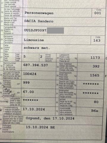 | Typenschein-Nr: | 15.10.2024 | Letzte MFK: | |