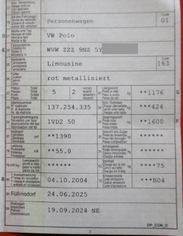 | Typenschein-Nr: | 1VD250 | Letzte MFK: | 19.09.2024 |
