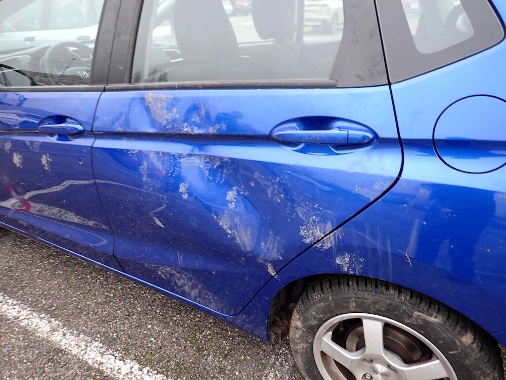 Sortie de route: pare-chocs, grille et caches de pare-chocs, calandre, feux avant droit, capot moteur, tôle frontale, ailes avant, portes avant et arrières, traverse de pavillon droite, montant central droit, cache de hayon.