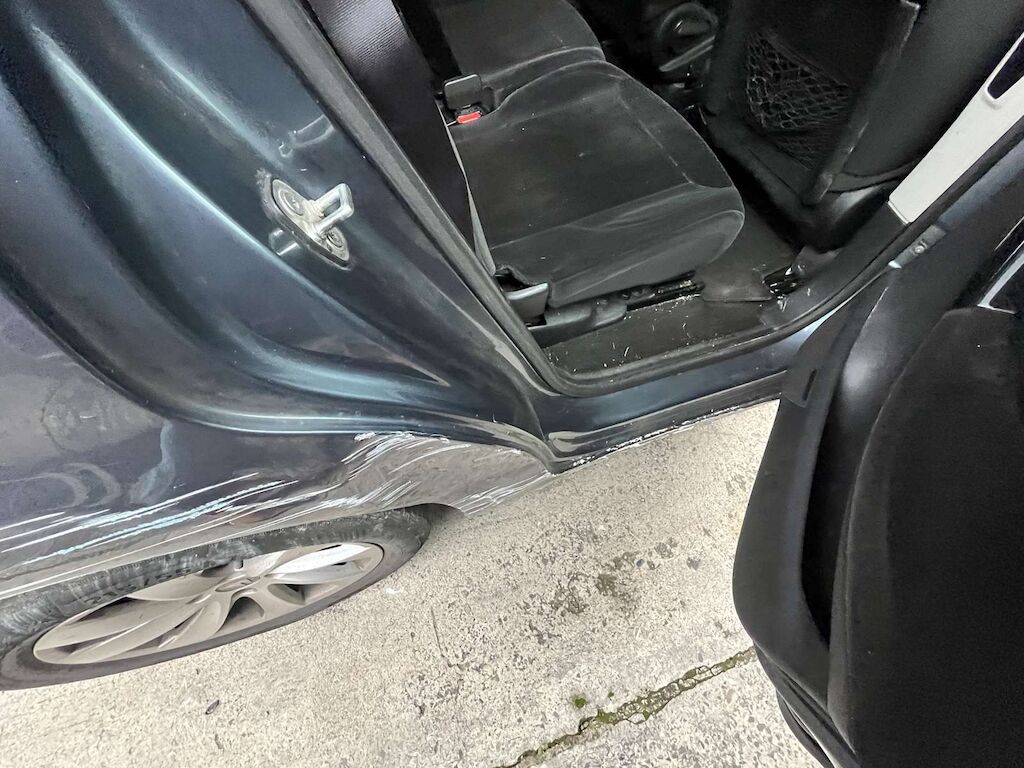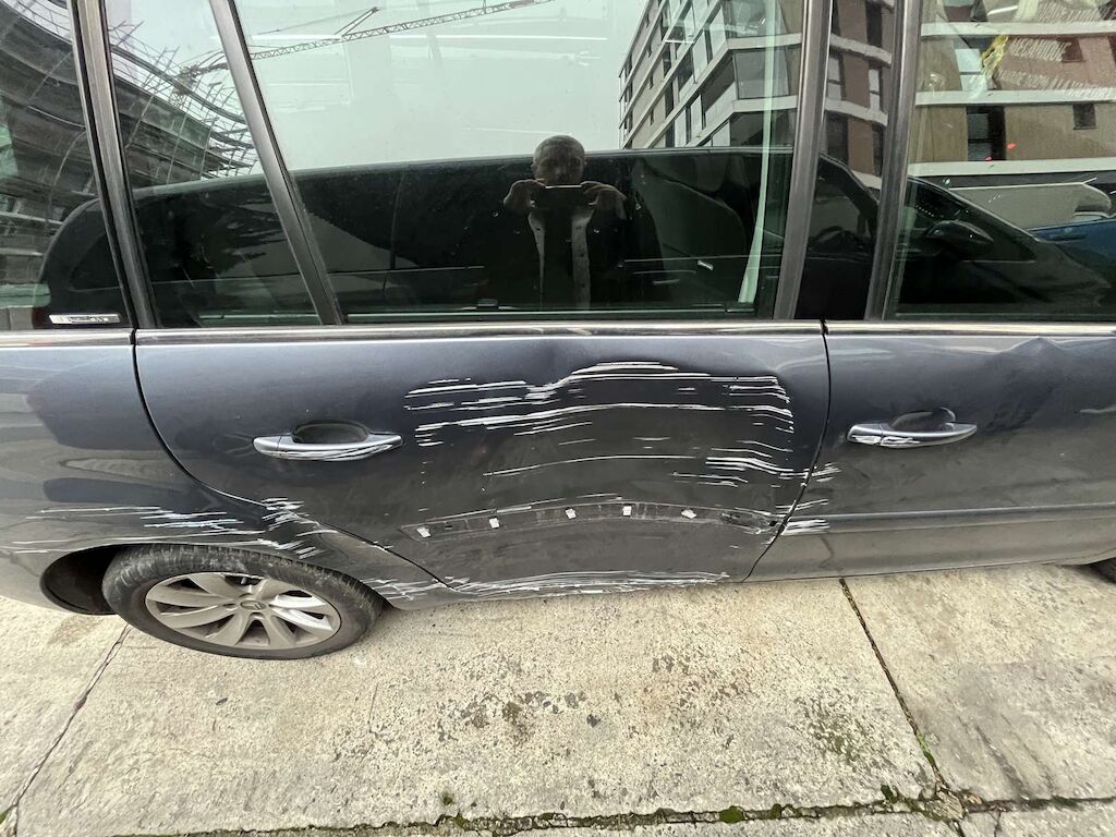 | Opis uszkodzen: | Choc latéral droit: Portes avant et arrière, bas de caisse, aile arrière et pare-chocs arrière enfoncés et endommagés. |