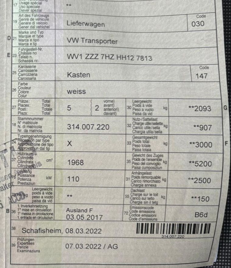 | Podwozie: | WV1ZZZ7HZHH127813 |
