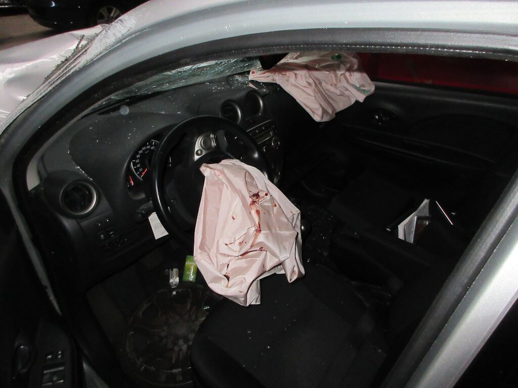 Motoroel und Frostschutz sind ausgelaufen ! => Motor lief ev. noch in der Endlage auf dem Dach. Beide Airbags sind ausgelöst ! Strefa obrazen: prawy przod, prawy bok, prawy tyl, przod, tyl, lewy przod, lewy bok, lewy tyl, gora Wady: silnik, skrzynia biegow, os przednia Wystrzelone poduszki: 2