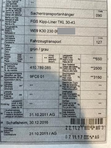 | Typenschein-Nr: | 9FC601 | Letzte MFK: | 22.11.2021 |