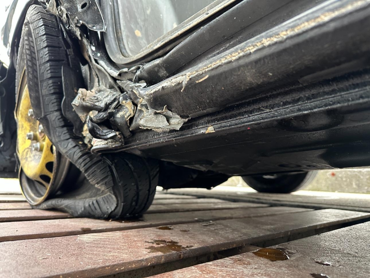 A-Säule, Antriebswelle, Aussenspiegel links, B-Säule, Diverse Anbauteile, Federbein vorne links, Front links, Kotflügel links, Lenkung, Motorhaube, Rad vorne links, Radaufhängung vorne links, Radhaus vorne links, Scheinwerfer links, Schweller links, Seite links, Seitenwand links, Stosstange vorne, Türe vorne links