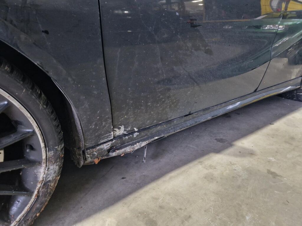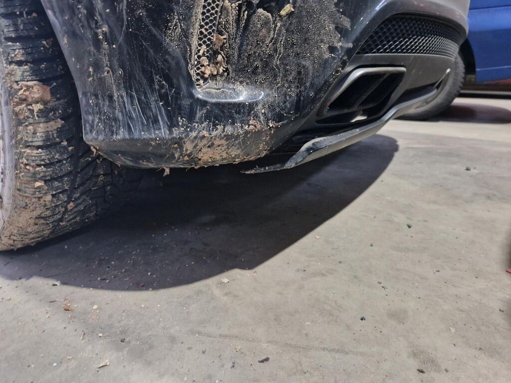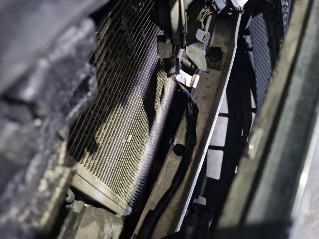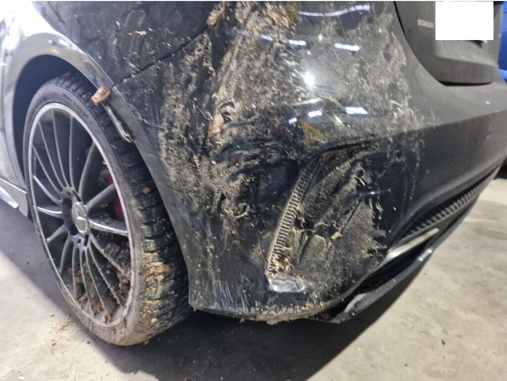 Stossstangenverkleidung mit Blenden, HAlter, Pralldämpfer, Kühlergrill, Scheinwerfer rechts, Motorhaube, Kotflügel und Radhausplastik vorne rechts, Ladeluftkühler, Klimakondensator, Kühler, Lüfter, Schlossträger, Kotflügel links, Felge vorne links Schweller und Türe vorne links, Felge hinten links, Stossstangenverkleidung hinten mit Schürze beschädigt.