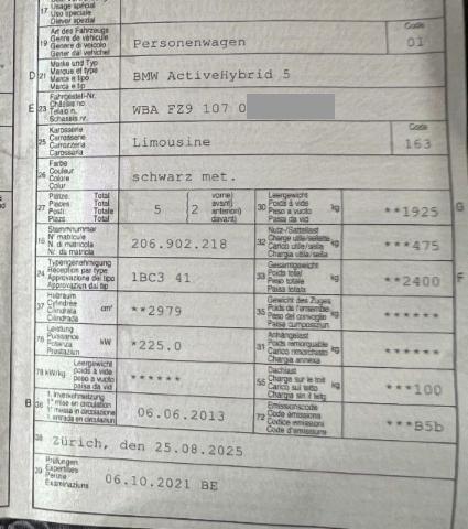 Wichtige HinweiseZustandFahrzeug ist fahrbar. Schlüssel Nur ein Schlüssel vorhanden. Kategorie Das Fahrzeug wird vom Besitzer noch benutzt. Weitere wichtige Hinweise Der Kilometerstand wurde abgelesen. Gebrauchsspuren und kleinere Vorschäden sind möglich. Am Fahrzeug sind Winterräder montiert, keine weitere Bereifung vorhanden. Vor Ort waren: 1 Schlüssel, Ausweis, Borddokumente. Motor und Getriebe wurde nicht geprüft Weitere nicht aufgeführte oder verdeckte Schäden sind möglich! Carbondiffusor wird vor Verkauf ausgebaut. BeschädigungenRechts Rechte Seite beschädigt. Heck Seitenwand hinten rechts eingedrückt/aufgestaucht. Achse Risiko Hinterachse. AusstattungSerienaustattung Fahrer und Beifahrer-Airbag Seitenairbag für Fahrer und Beifahrer Lenksäule elektrisch verstellbar Elektrische Sitzverstellung mit Memory Innenspiegel automatisch abblendbar Aussenspiegel elektrisch verstellbar und heizbar Nebelscheinwerfer vorne Dynamische Stabilitäts-Control DSC Kindersitzbefestigung Isofix 12 V Steckdose Navigationssystem Professional Velours-Fussmatten Uni-Lackierung Lederlenkrad mit Multifunktionstasten 3-Speichen Kopfairbags vorne + hinten Regensensor und automatische Fahrlichtsteuerung Geschwindigkeitsregelung mit Bremsfunktion Edelholzausführung Esche-Maser Klimaautomat 4-Zonen inkl. Mikrofilter ABS Antiblockiersystem inklusive Bremsassistent Ambientebeleuchtung Stoff Diagonal Leichtmetallräder V-Speiche 236 Freisprecheinrichtung mit USB-Schnittstelle Instrumentenkombination/ erweitert Keine Gewähr auf die Angaben der Serienausstattungen Pack Swiss-Premium SonderausstattungDiebstahlwarnanlage Lordosenstütze für Fahrer und Beifahrer Sitzheizung für Fahrer und Beifahrer Sonnenschutzrollo für Heckscheibe elektrisch Innen- und Aussenspiegel automatisch abblendbar Automatische Heckklappenbetätigung Park Distance Control PDC Metallic-Lackierung Pack M Aerodynamik Scheinwerfer-Waschanlage M-Lederlenkrad HiFi-Lautsprechersystem Adaptives Kurvenlicht Integrierte Universal-Fernbedienung Komfortzugang Head-Up Display Interieurleisten Aluminium Feinschliff Fernlichtassistent Rückfahrkamera Digital audio DAB-Tuner Glasdach elektrisch Komfortsitze elektrisch verstellbar mit Memory/ vorn Spurwechselwarnung BIN Dachhimmel anthrazit Bi-Xenon-Licht inkl. Waschanlage Speed Limit Info Anbindung Bluetooth- und USB-Geräte M Leichtmetallräder Doppelspeiche 351/ Mischbereifung Pack M Sport Apps Active Protection |