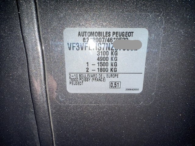 | VIN | VF3VFEHS7NZ****** | Reifenprofil in %: | 69 |