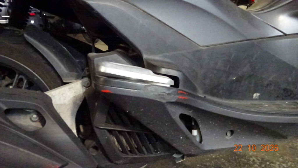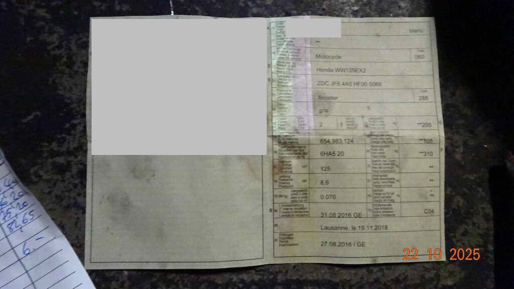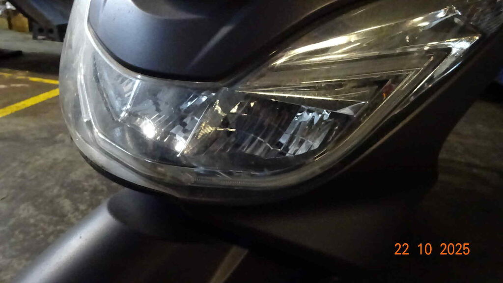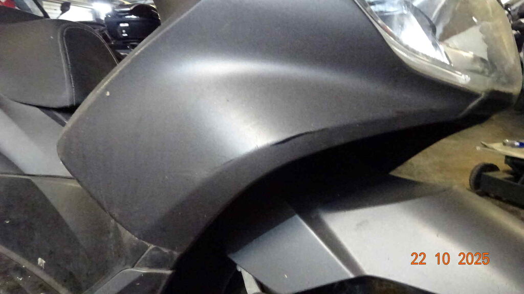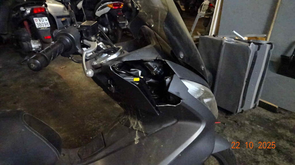 | Opis uszkodzen: | Phare avant, retro, levier de frein, embout, carenage latérale avant, tablier, cablage d'alimentation, bas de caisse, marche pied, échapppement, etc. |