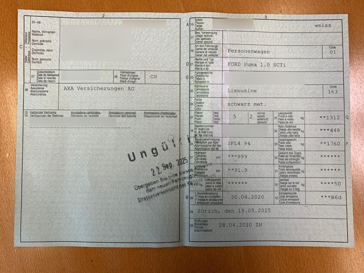 Die (vom Fahrzeugexperten) ermittelten Reparaturkosten beziehen sich auf das versicherte Ereignis. Allfällige zusätzliche, nicht versicherte Schäden/Vorschäden, sind in den Reparaturkosten nicht enthalten. Die deklarierten Ausstattungsmerkmale können von der effektiven Ausstattung abweichen.