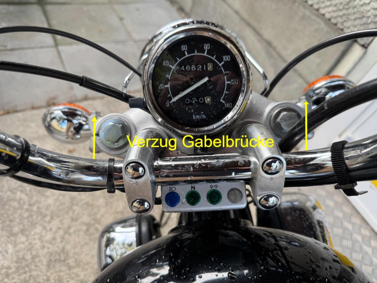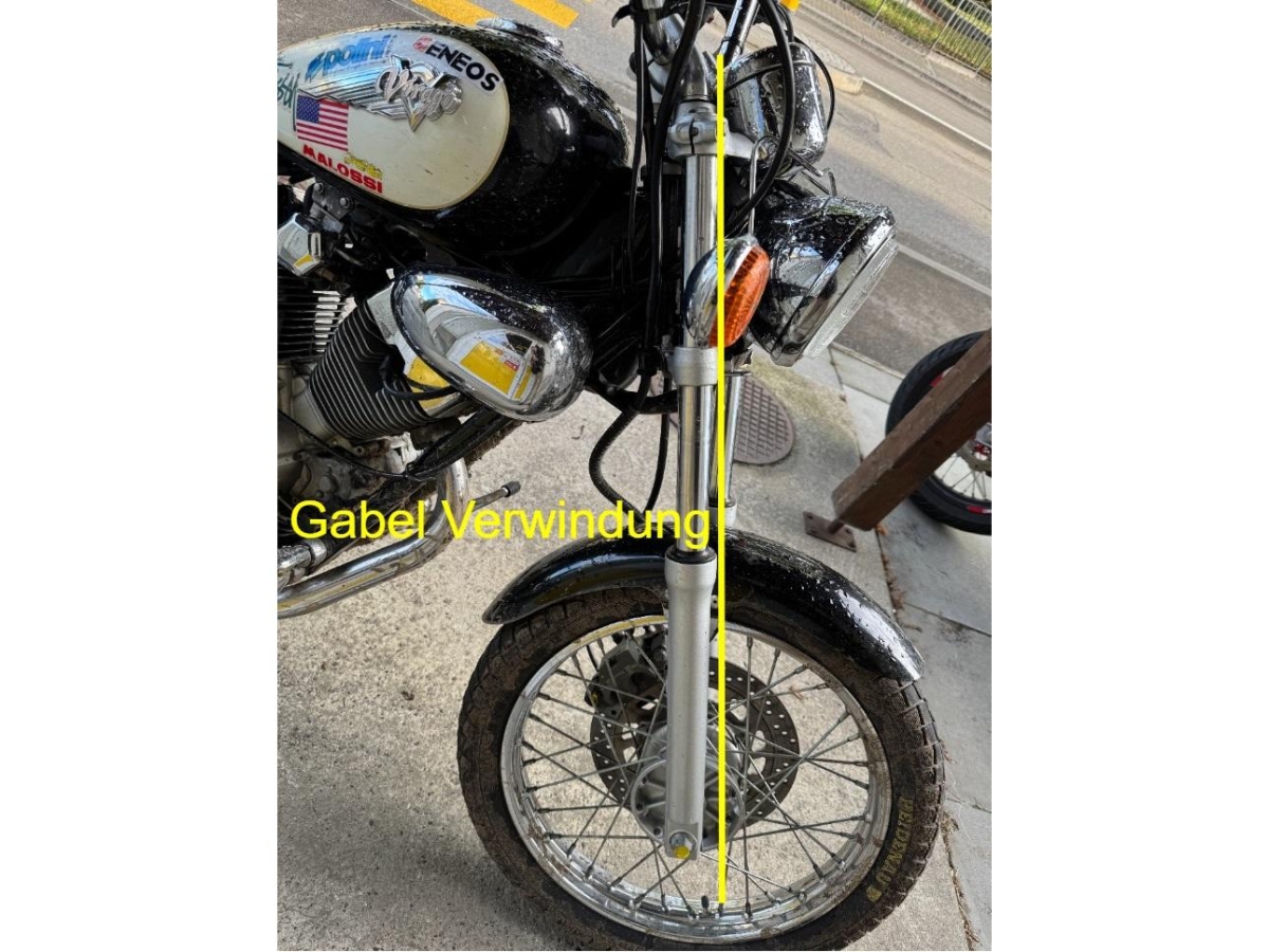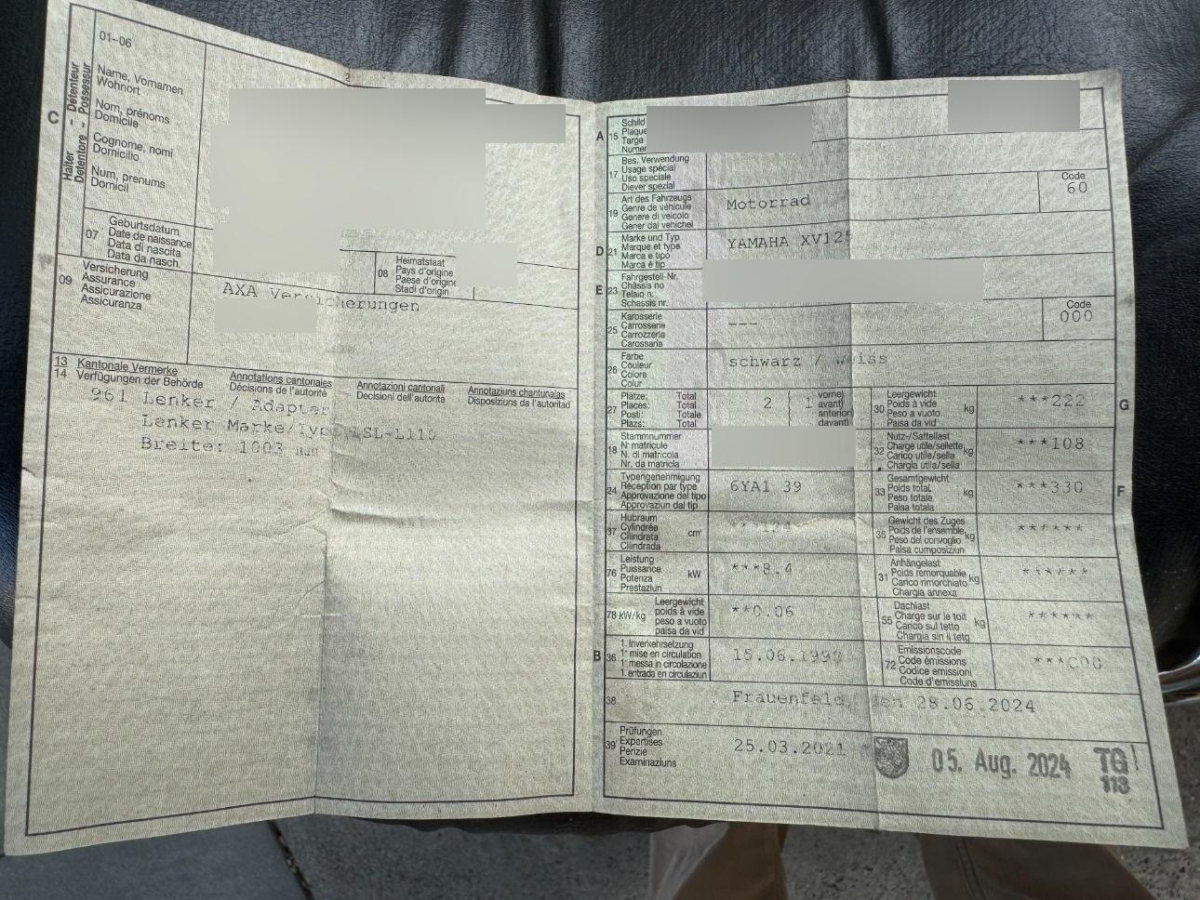 Auspuffkollektor, Aussenspiegel links, Aussenspiegel rechts, Fussraster links, Fussraster rechts, Gabelholm, Griff links, Griff rechts, Lenker, Rad vorne, Schutzblech vorne, Tank
