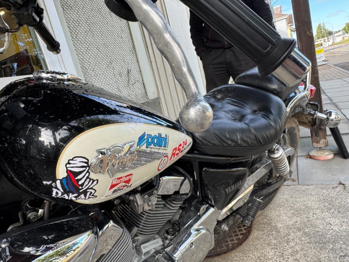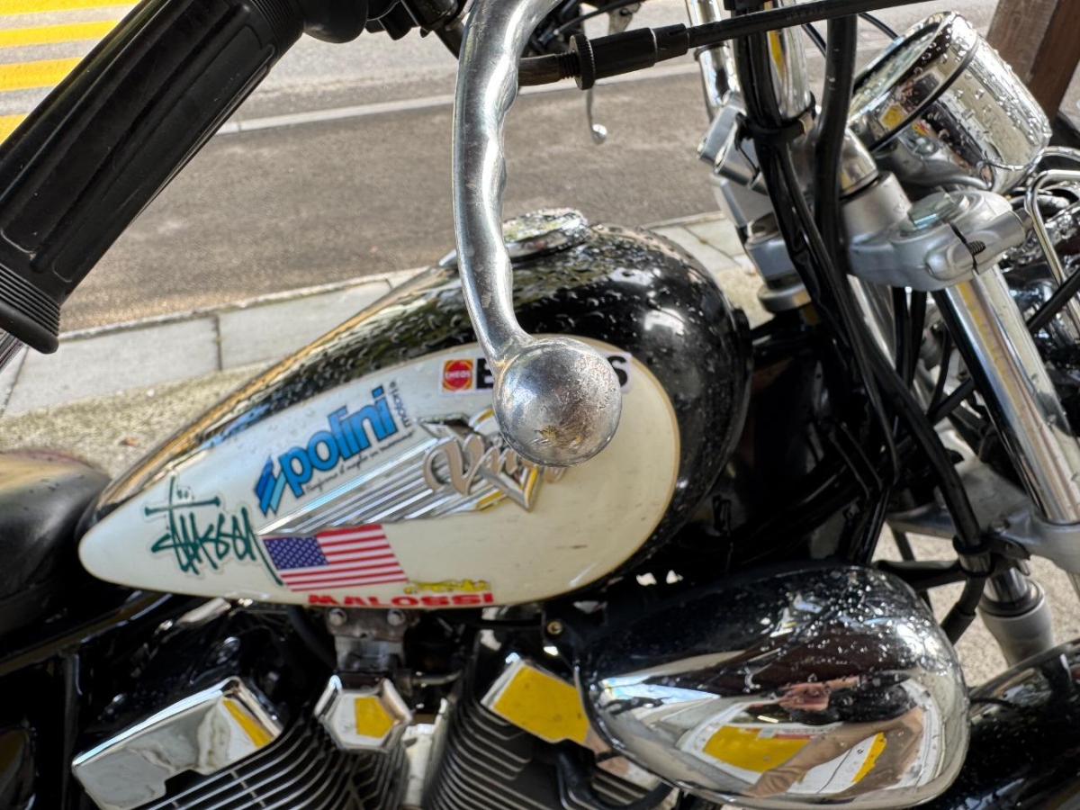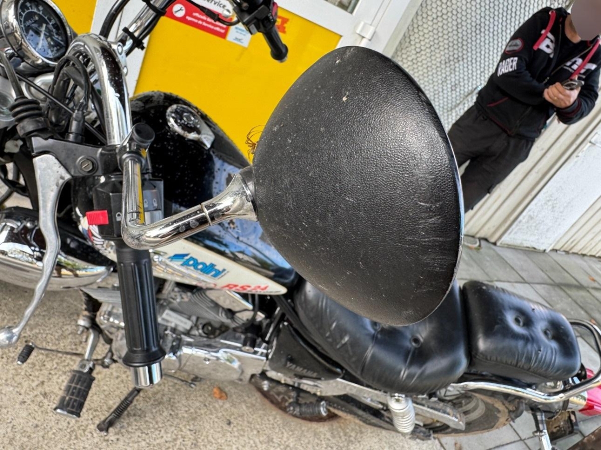 Auspuffkollektor, Aussenspiegel links, Aussenspiegel rechts, Fussraster links, Fussraster rechts, Gabelholm, Griff links, Griff rechts, Lenker, Rad vorne, Schutzblech vorne, Tank