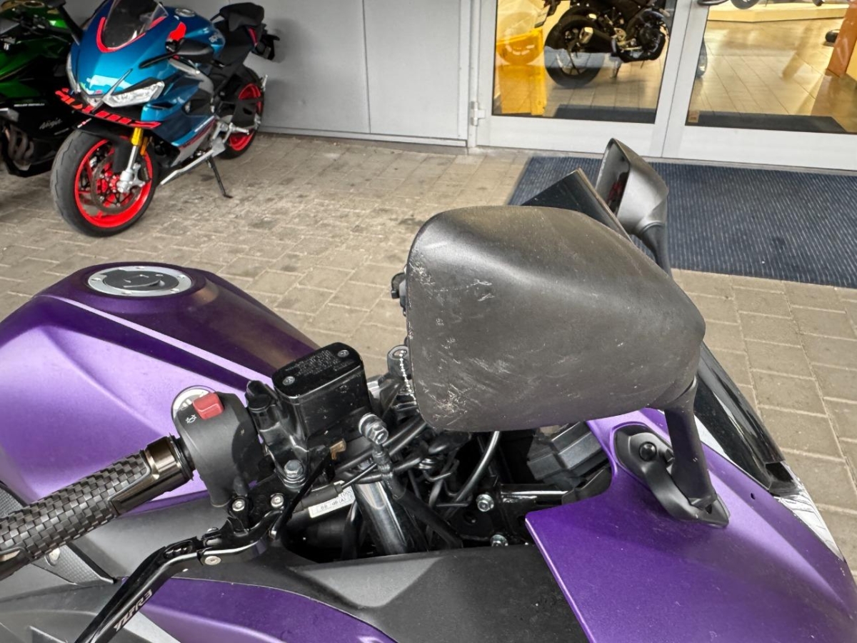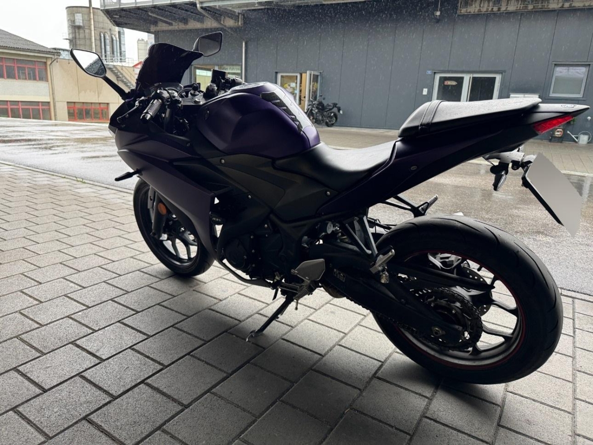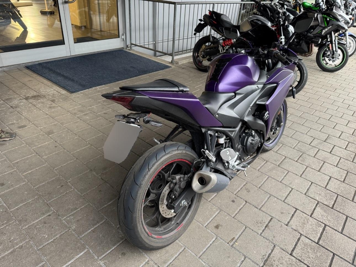 Motorrad hat Zubehörverschalungen in Violett. Diese sind keine Originale.