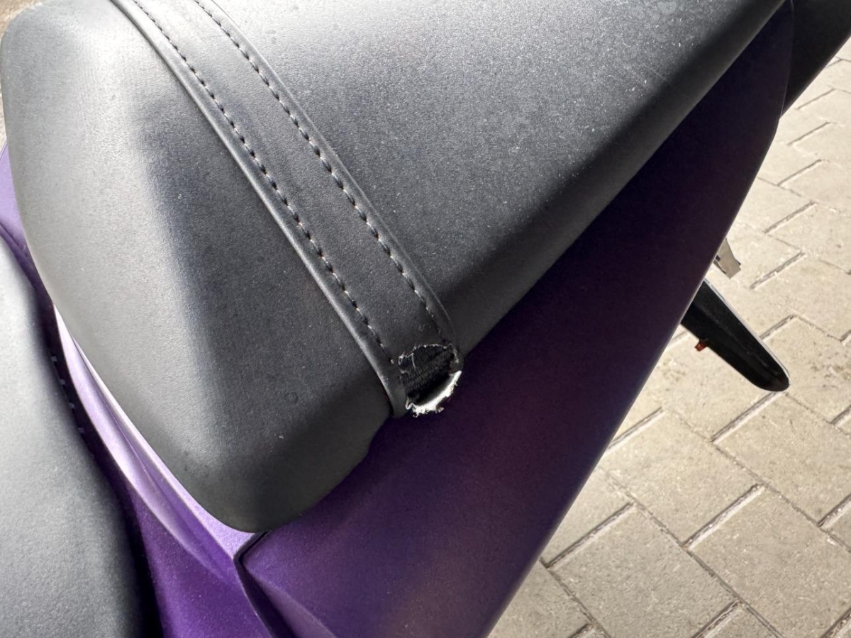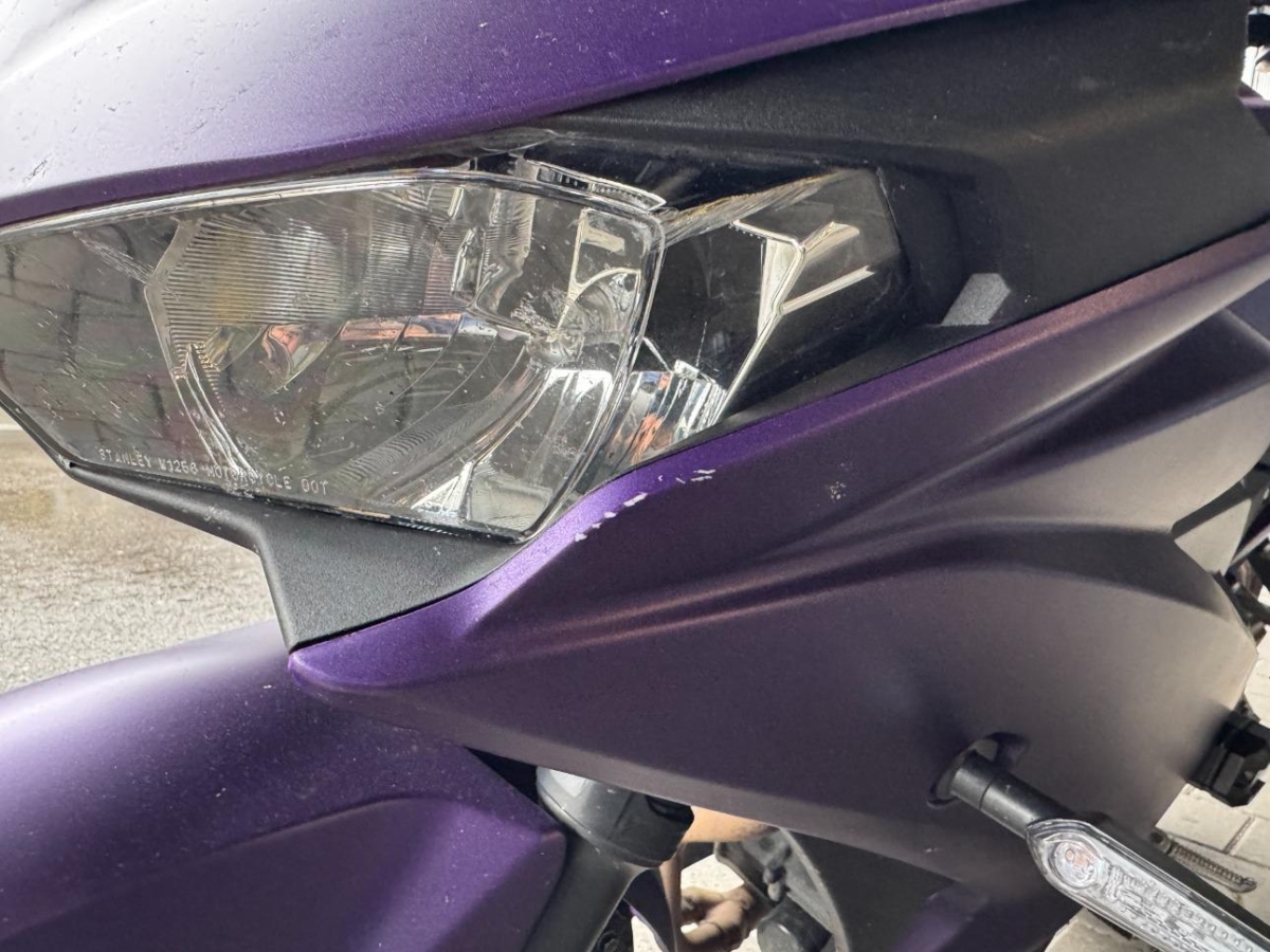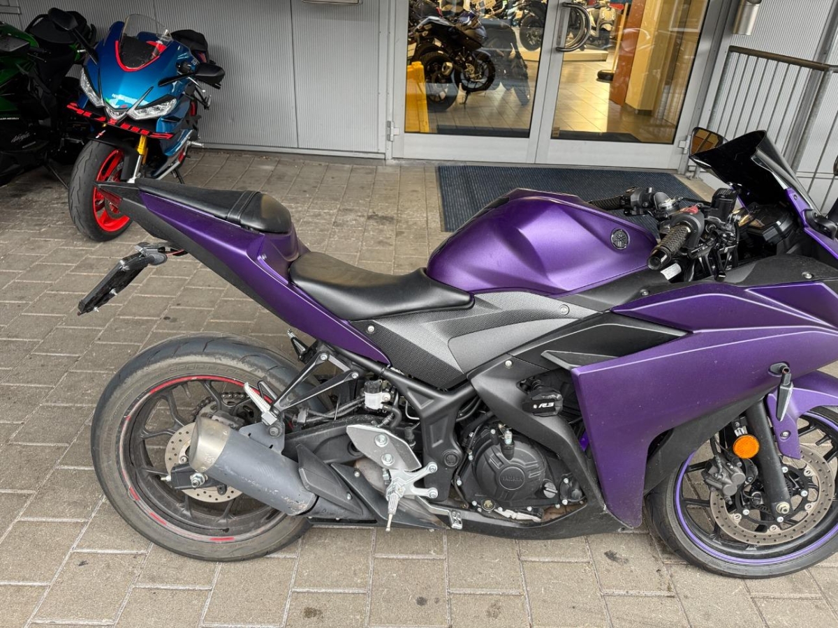 Motorrad hat Zubehörverschalungen in Violett. Diese sind keine Originale.
