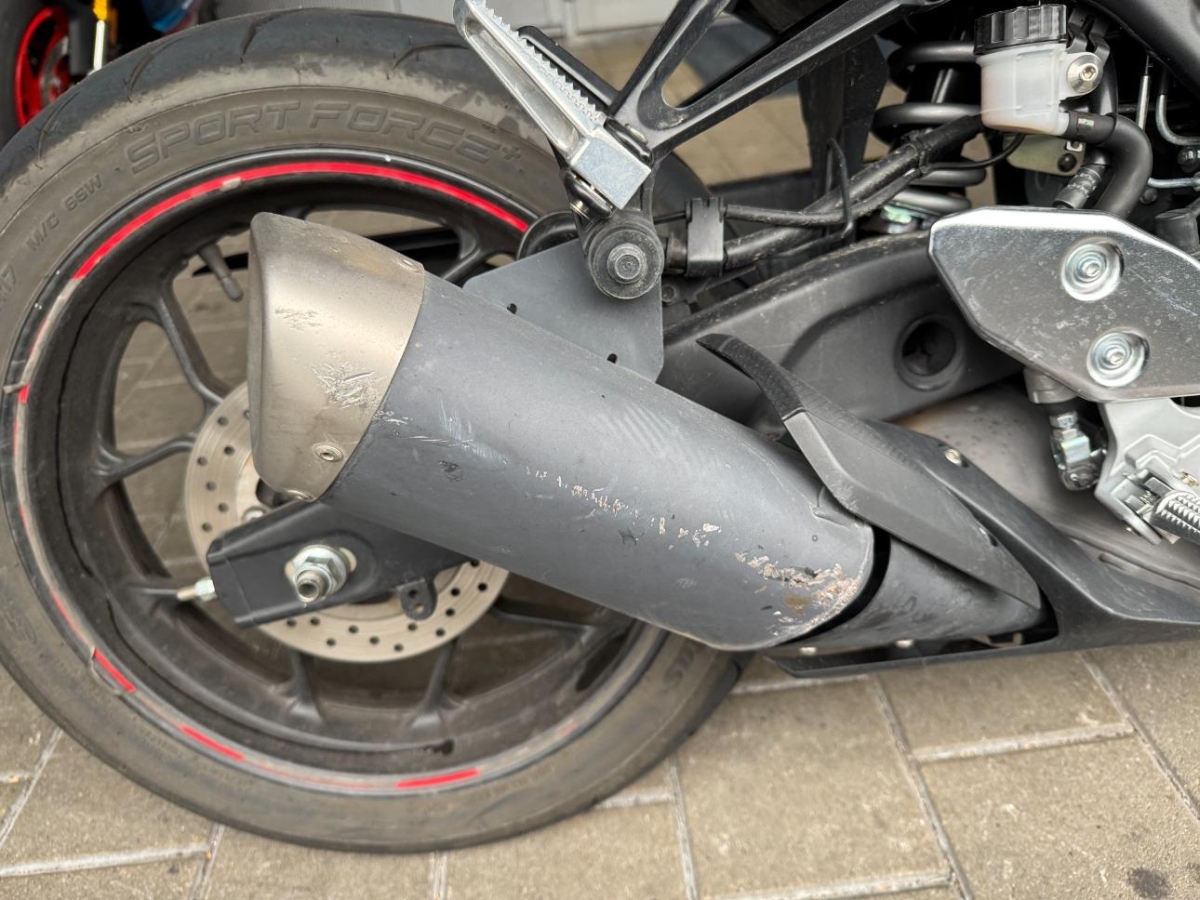 Auspufftopf, Aussenspiegel links, Aussenspiegel rechts, Diverse Anbauteile, Fussraster rechts, Griff links, Griff rechts, Kupplungsgehäuse, Lenker, Scheinwerfer, Schwinge, Seite links, Seite rechts, Sitz, Verschalungen links, Verschalungen rechts, Verschalungen vorne