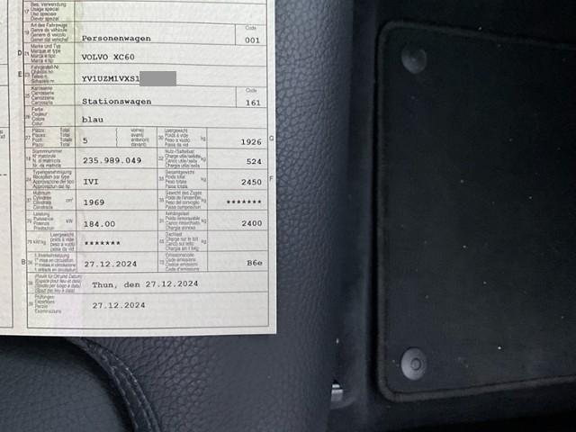Wichtige HinweiseZustandFahrzeug ist NICHT fahrbar. Motor startet nicht, Ursache unbekannt. BeschädigungenLinks Linke Seite beschädigt. Front Radhaus vorne links eingedrückt / gestaucht. Achse Risiko Lenkung. Unterboden Bodengruppe verzogen/beschädigt. Sonstige Schäden Div.Carrosserie Teile sind leicht beschädigt. AusstattungSerienaustattung Airbag Fahrer und Beifahrerseite Elektrische Fensterheber vorne + hinten Aussenspiegel elektrisch verstellbar und heizbar Bordcomputer Zentralverriegelung mit Fernbedienung Lenkrad verstellbar Höhenverstellbare Vordersitze elektrisch SIPS Kopf-/ Schulterairbag Gepäckraum-Trennnetz Deaktivierung Beifahrerairbag Antibeschlagssensor Zwei Zonen-Klimaautomatik Rückfahrkamera Aussenspiegel und Innenspiegel automatisch abblendend Türsicherung hinten/ elektrisch Mittelarmlehne vorne mit Staufach Dachreling schwarz Dekorausstattung Aluminium Keyless-Drive Aussenspiegel elektrisch anklappbar inkl. Bodenleuchten Laderaumrollo IDIS Fahrerinformationssystem WHIPS Schleudertrauma-Schutzsystem Steckdose 12 V im Gepäckraum Regen- und Lichtsensor SIPS Seitenairbag Fahrer und Beifahrerseite Knieairbag Fahrer Hill Descent Control HDC ABS und EBD Elektr. Bremskraftverteilung Automatische Parkbremse Berganfahrhilfe Einparkhilfe vorne und hinten Geschwindigkeitsregler und - begrenzer Reifendruck-Sensoren TPMS Stop + Start System Spurhalteassistent LKA Leichtmetallräder 18" 5-Speichen Keine Gewähr auf die Angaben der Serienausstattungen High Performance Sound System DAS Driver Alert/ Assistenzsystem DAB+ Digital Audio Broadcast Digitale Instrumentierung Lendenwirbelstützen elektr. für Vordersitze Heckklappe elektrisch mit Freihandfunktion Akzentleisten [Seitenfenster] in Chrom VSP Volvo Swiss Premium Verkehrsschild-Erkennungssystem City Safety inkl. Kreuzungsbremsassistent Volvo On Call VOC inkl. WiFi Hotspot Drive-Mode Wireless Charging für mobile Geräte LED-Scheinwerfer mit Fernlichtassistent ESC Fahrdynamikregelung Komfortsitze mit Textil/ T-Tec Erweitertes Luftqualitätssystem Infotainmentsystem Android Volvo Cars App inkl. WiFi Hotspot SonderausstattungMetallic-Lackierung Abgedunkelte Seitenscheiben und Heckscheibe Komfortsitze mit Lederbezug Pack Winter Sonstige Ausstattung und Zubehör Anhängerkupplung |