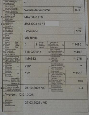 | VIN | JMZGG143761****** | Reifenprofil in %: | |
