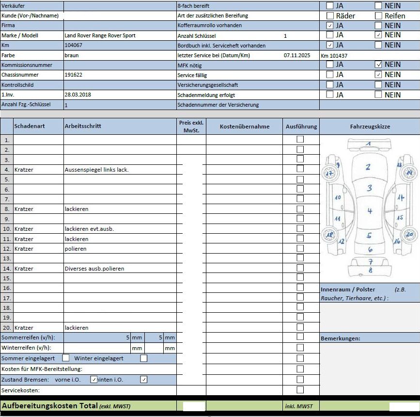 | Keine technische Prüfung (Werkstatttest) vorgenommen Diverse Schäden an Karosserie/Lack. Fahrzeug ab Platz, ohne Garantie und Aufbereitung. DPF/FAP Filter nicht kontrolliert Keine Gewähr auf die Angaben der Sonder- und Serienausstattung / keine mechanische Prüfung. Fahrzeug wurde unzerlegt expertisiert / keine Haftung für allfällige, nach Demontage bekanntwerdenden Mängel. Fahrzeugbereifung und Ausstattung gemäss Fotos / Fahrzeugkauf auf eigenes Risiko ab Platz ohne Nachwährschaft. - Div. Kratzer am Fahrzeug | |