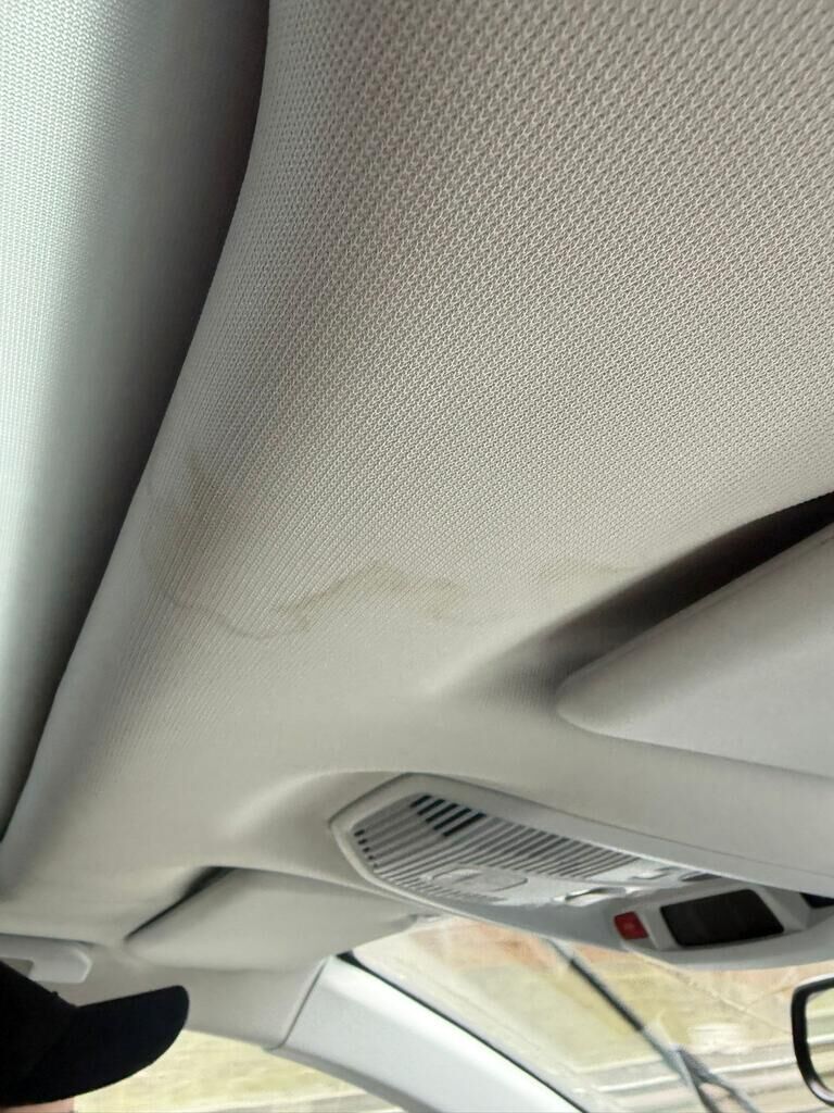 Wassereintritt Dachhimmel vorne vom Panoramaglasdach her, bei intensivem Dauerregen
