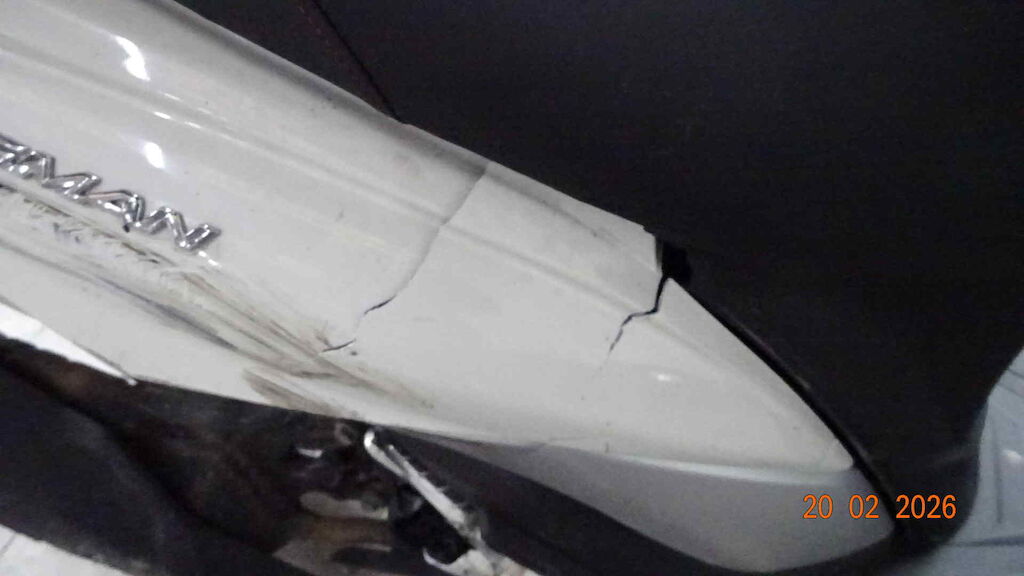 | Opis uszkodzen: | Choc avant droite - Fourche, garde boue, retro, levier frein, carenage avant, tablier, marche pied, bas de caisse, carenage arrière, poignée passager, protection échappement, etc. |