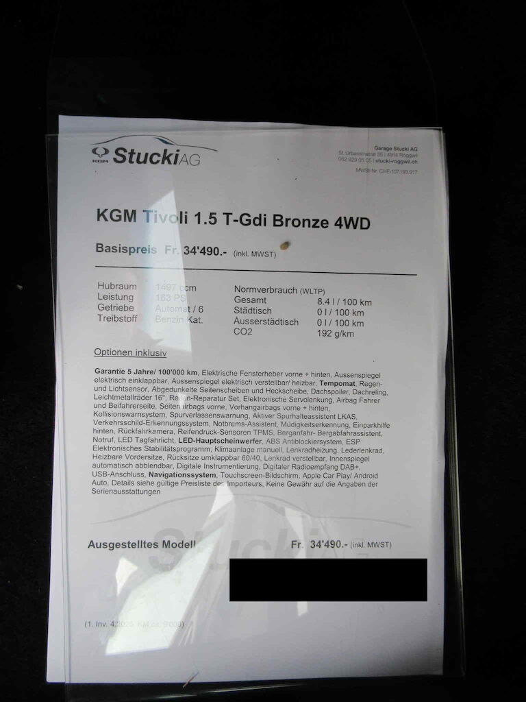 | Model: | TIVOLI 1.5TGDI BRONZE 4WD |