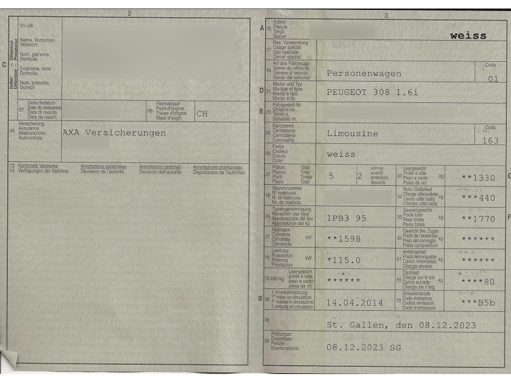 Die (vom Fahrzeugexperten) ermittelten Reparaturkosten beziehen sich auf das versicherte Ereignis. Allfällige zusätzliche, nicht versicherte Schäden/Vorschäden, sind in den Reparaturkosten nicht enthalten. Die deklarierten Ausstattungsmerkmale können von der effektiven Ausstattung abweichen.
