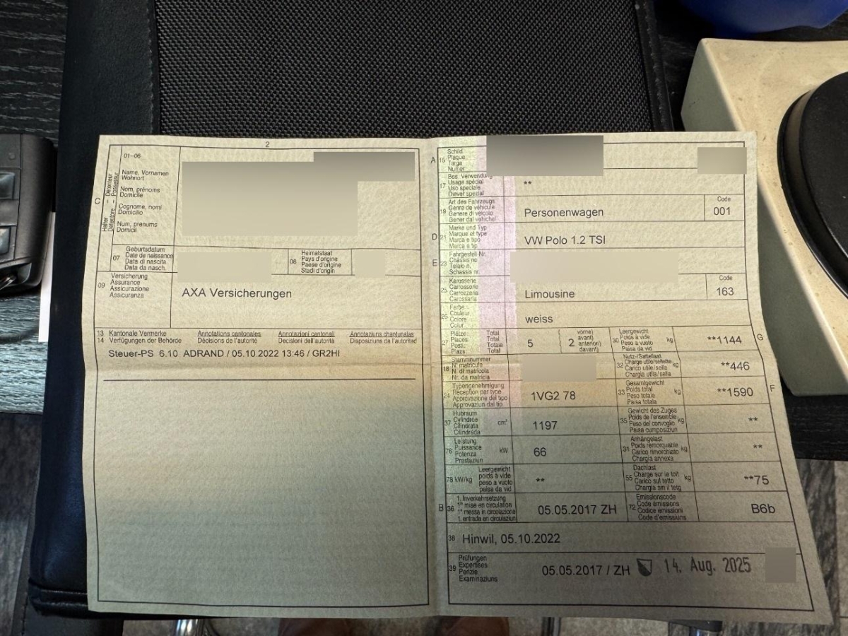 | Fahrzeugausweis | Vorhanden |