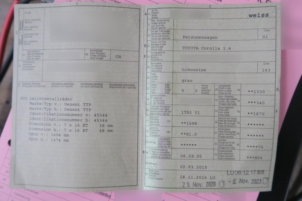 Radiovorbereitung, Dachantenne und, Lichtwarnsummer, Servolenkung geschwindigkeitsabhängig, Licht: Nebelscheinwerfer, Heckscheibenheizung, Airbag: Seitenairbag für Fahrer und Beifahrer, Stossstangen und Aussenspiegel in Wagenfarbe, Tageskilometerzähler, Radio/CD-Player mit 6 LS, Laderaumabdeckung, Window-Kopfairbags im Fahrgastraum, Sitze: Rücksitzlehne geteilt abklappbar, Airbag: Window-Kopfairbags, Elektrische Fensterheber vorne + hinten, Katalysator geregelt, Räder: 4 Leichtmetallfelgen 15J mit Pneu, Licht: Drittes Bremslicht, Cupholder vorne, Bremsassistent (BAS), 3 Kopfstützen hinten, Tankdeckel-Entriegelung von innen, Zentralverriegelung mit Fernbedienung, Heckscheiben-Wisch-/Waschanlage, Digital Uhr, Drehzahlmesser, Türgriffe aussen in Wagenfarbe, Gurtstraffer vorne, Aussenspiegel rechts und links beheizbar und elektrisch verstellbar, Polster: Stoff-Ausstattung, Höhenverstellbare Gurten vorne, Klima: Klimatisierungsautomatik, 3-Punkt-Sicherheitsgurte auf allen Plätzen, Leuchtweitenregulierung von innen, Armlehne vorne mit Ablagefach, Sitze: Fahrersitz höhenverstellbar, Lenkrad: Lenkrad, Schaltknauf und Handbremshebel Leder, Aussentemperaturanzeige, Sitze: Sportsitze vorne, Airbag: Airbag Beifahrer deaktivierbar, Lenkrad: Lenkrad längs- und höhenverstellbar, Getönte Scheiben, Carbon Applikationen, Info-Display, Handschuhfach, Antiblockiersystem (ABS), Radiofernbedienung, Pollenfilter (Staubfilter), Wegfahrsperre elektronisch, Schutzleisten in Wagenfarbe, ISOFIX Kindersitzvorrichtung, Leseleuchten vorne, Regensensor für Scheibenwischer vorne, Seitenaufprall-Schutzsystem, Getriebe: 5-Gang-Getriebe, Licht: Nebelschlussleuchte, Scheibenwischer vorne mit Intervall, Stabilitäts- und Traktionskontrolle (VSC und TRC), Airbag: Airbag Fahrer und Beifahrer, Innenspiegel automatisch abblendbar, Reserverad, Sitze mit Schleudertrauma-Schutzsystem, Innenlicht-Abschaltverzögerung