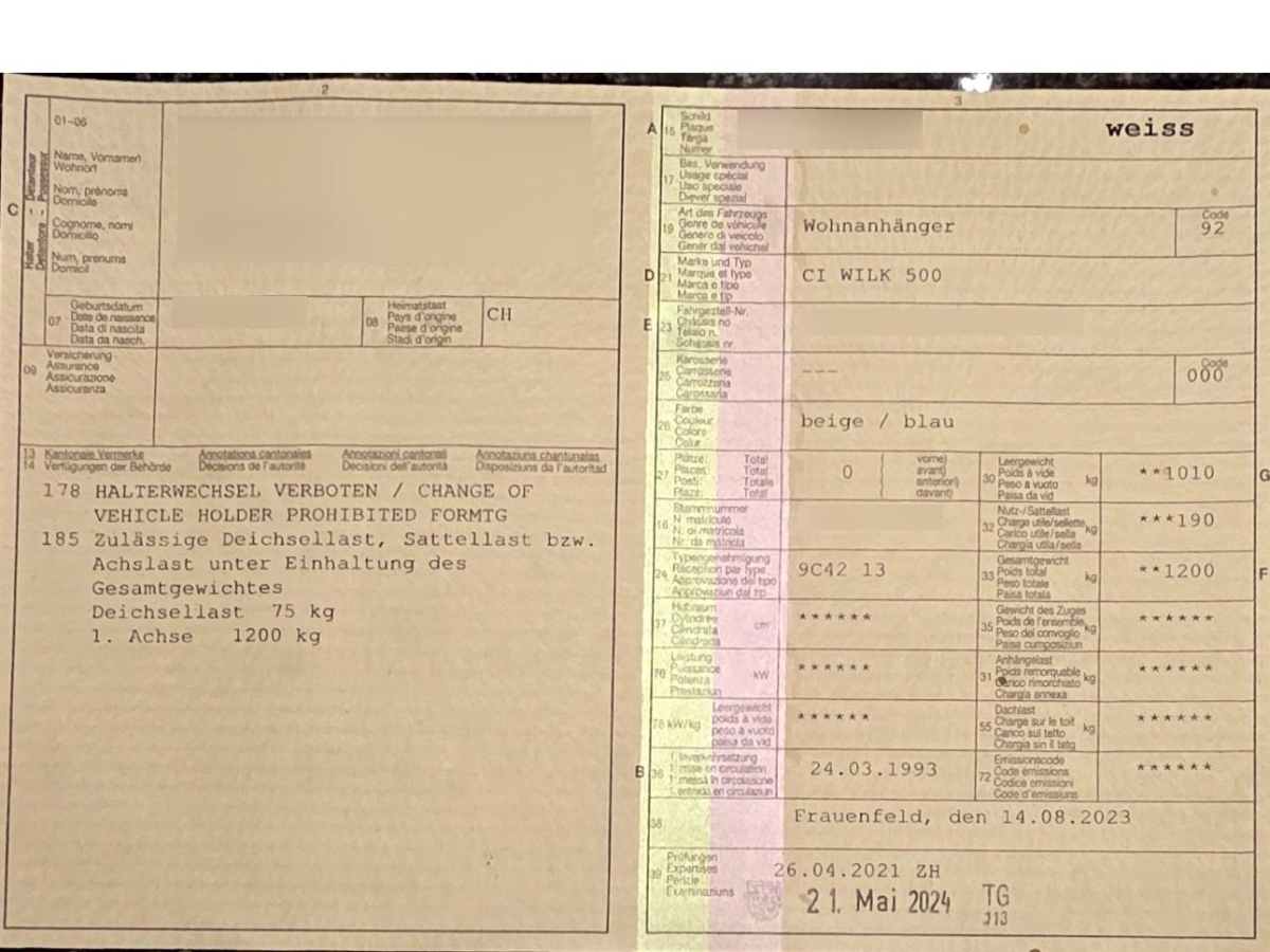 | Fahrzeugausweis | Vorhanden |