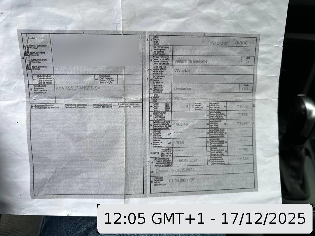 Media: Smartphone Integration "maps + more dock", Fensterheber vorne elektrisch, Sitze: Sitzbelegungserkennung hinten, Gepäckraumbeleuchtung, Räder: Tire Mobility Set: 12-Volt-Kompressor und Reifendichtmittel, Sitze: Sitzplätze 2 vorne / 2 hinten / Rücksitzbank ungeteilt, Lehne asymetrisch geteilt umklappbar, Airbag: Kopf- und Seitenairbag vorne, kombiniert Kopfairbagsystem für Frontund Fondpassagiere - inkl. Seitenairbags vorne, Regensensor, Gepäckraumabdeckung inkl. Gepäcknetz, Warndreieck, Licht: Lichtdreh- und Heizungsschalter in Chrom, Räder: Radvollblenden für Stahlräder, Radsicherungsschrauben, Assist: Verkehrszeichenerkennung über Navigationssystem maps&more, Innenspiegel manuell abblendbar, Nichtraucherausführung, 12-V-Steckdose vorne, Multifunktionsanzeige, Kombiinstrument mit elektronischem Tachometer in Chrom (e-spezifisch), Hochton-Signalhorn, Scheibenwischer vorne und Heckscheibenwischer mit Intervallschaltung, Gepäckraumboden in 2 Höhen einstell- und herausnehmbar, Bordwerkzeug und Wagenheber, Ohne Fussmatten, Ablagefächer in die Türen (vorne mit Halterung für 1,0-l-Flaschen), Ladedose AC-Normalladen mit bis zu 7.2 kW, Typ 2 Stecker, Bremsenergierückgewinnung, Räder: Stahlräder - 4 Stahlräder 5 J x 14 - Reifen 165/70 R14 Hankook Reifen - Mit Radvollblenden, Taste für Fahrprofilauswahl (eco, eco+), Ladekabelunterbringung im Kofferraum, Mittelkonsole inkl. 1 Becherhalter vorne und 1 Becherhalter hinten, Licht: Nebelschlussleuchte, Dachhimmel in light grey, Taschenhalter, Schalthebelknauf in Kunststoff, Sitze: Vordersitze mit höheneinstellung, Scheibenbremsen vorne, innenbelüftet / Trommelbremsen hinten, Lackierung: Uni-Lackierung (teal blue uni), Media: USB-Schnittstelle auch für iPod/iPhone, Zentralverriegelung mit Funkfernbedienung mit zwei Funkklappschlüssel, Handschuhfach mit Klappe, Sonnenblende für Fahrer und Beifahrer, auf Beifahrerseite mit Makeup-Up-Spiegel, Aussenspiegel mit integrierten Blinker, Ohne zusätzliche Leuchten (Beleuchtung innen), Elektronisches Stabilisierungsprogramm (ESP) inkl. ABS mit Bremsassistent - inkl. ASR, EBV, MSRund Berganfahrassistent, Ladekabel Mode 3 Typ 2, 32 A Stecker fahrzeugseitig und netzseitig - geeignet für öffentliche AC-Ladeinfrastruktur, Assist: Lane Assist, Warnton und -leuchte für nicht angelegten Fahrergurt, optisch für den Fond, 2 Kopfstützen hinten, höhenverstellbar (L-Form), Heckscheibenheizung, Ladedose DC-Schnellladen mit bis zu 40 kW, Combo Stecker (Combined Charging System CCS), Licht: LED Tagfahrlicht im Lüftungsgitter, Frontscheibe in Wärmeschutzglas, unbeheizt, Car-Net und e-Remote - Fernsteuerung der Heizung/Klimatisierung per Mobiltelefon, Programmierung der Vorklimatisierung auch ohne Stromnetzverbindung, Abrufen der Informationen über die Batterieladung, Einstellen der Abfahrtszeit, Abfrage allgemeiner Fahrzeuginformationen), ersten 3 Jahre Vertragslaufzeit gratis, Dekorleiste an der Heckklappe in Blau, Klima: Klimaanlage "Climatronic", Lenkrad: Lenkrad Kunststoff, Licht: Halogen-Hauptscheinwerfer und Blinkleuchten unter gemeinsamer Klarglasabdeckung, Media: Radiosystem "composition phone" mit 5.0"-Farbdisplay - Multimediabuchse AUX-IN, FM-Empfang, SD-Kartenschacht und Mobiltelefonvorbereitung (Bluetooth), Dash pad "black cube", Sitze: Kopfstützen vorne im Sitz integriert, Sound Aktor mit "e-Sound", Airbag: Airbag für Fahrer und Beifahrer, mit Beifahrerairbag-Deaktivierung über Schlüssel, ISOFIX-Halteösen (Vorrichtung zur Befestigung von 2 Kindersitzen auf der Rücksitzbank) - inkl. Top-Tether-Vorrichtung, Getriebe: 1-Gang Getriebe automatisiert, Media: Telefonschnittstelle, Garantie: 2 JAHRE NEUWAGEN-GARANTIE OHNE KILOMETER-BEGRENZUNG, Polster: Sitzbezüge in Stoff Dessin "fusion", Zentralverriegelung ohne Safe-Sicherung inkl. Funkfernbedienung, Dreipunkt-Automatiksicherheitsgurte hinten, aussen mit ECE-Label, Schwellerverbreiterung in Wagenfarbe, Licht: Fahrlichtschaltung automatisch, mit Tagfahrlicht, Leaving home-Funktion - inkl. manueller Coming home-Funktion, Basisladekabel AC-Normalladen mit bis zu 1.8 kW, Typ 2 Stecker fahrzeugseitig und Typ 13 Stecker net - Haushaltssteckdose, Handbremshebelgriff in Kunststoff, 4 Türen, Seitenscheiben hinten ausstellbar, Garantie: VW Garantie: 12 Jahre Karosserie-Garantie gegen Durchrostung, Media: Sound "plus" - 6 Lautsprecher, Stossfänger in Wagenfarbe mit Lufteinlässen in Wabenstruktur, Garantie: VW Garantie: 8 Jahre oder 160’000 km Garantie auf HV-Batterie, Media: Digitaler Radioempfang DAB+, Reifendruckkontrollanzeige, Servolenkung elektromechanisch, Entfall des Schriftzugs auf der Heckklappe "e-up!"