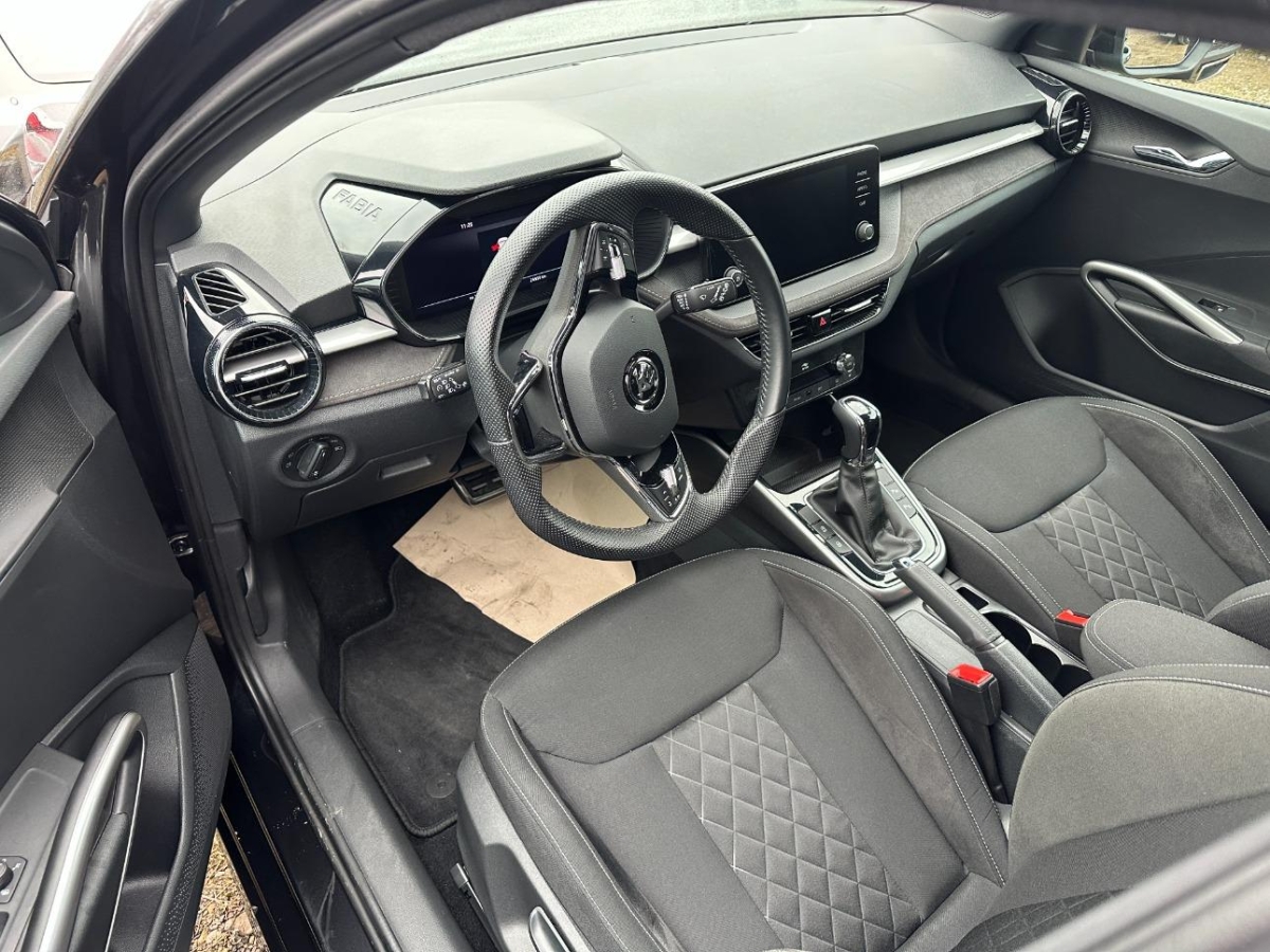 Paket: Winterpaket (Scheibenwaschdüsen beheizt, Sitze: Vordersitze heizbar), Aussenspiegel rechts und links beheizbar und elektrisch anklappbar, automatisch abblendend, Lackierung: Perleffekt-Lackierung, Licht: Bi-LED Scheinwerfer mit LED Tagfahrlicht, LED Corner Funktion, SunSet (Heckscheibe und hintere Seitenscheiben dunkel getönt), Sitze: Höhenverstellbare Vordersitze mit manueller Lordose, Licht: Nebelscheinwerfer, Räder: Leichtmetallräder 6 J x 16" PROXIMA AERA, silber 195/55 R16, Assist: Parksensoren hinten, Assist: Parklenkassistent Parkassist(lenkt das Fahrzeug automatisch in Längs-und Querparklücken ein) inkl. Einparkhilfe (Parksensoren vorne und hinten), Dachhimmel schwarz, Dekor: Interieur Stoff Artisyn in schwarz mit Absteppung, Lenkrad: Supersportlenkrad mit MuFu Radio und Handy, Paket: Sportpaket Dynamic, Paket: mySKODA Pack Style Plus, Pedalerie mit Aluminiumauflage, Polster: Sitzbezüge Suedia/Stoff in schwarz / Dekoreinlage am Armaturenbrett Brushed Grey Metallic, Sitze: Sportsitze Suedia / Stoff