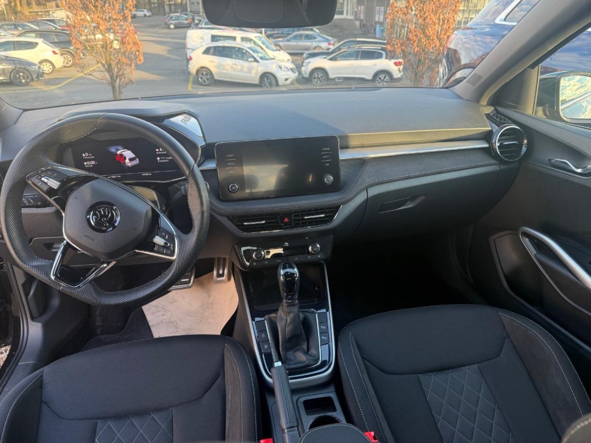Klappbare Mittelarmlehne vorn mit Jumbobox, Luftausströmer hinten und Cupholder abnehmbar mit Easy open (Schneemann), Nebelschlussleuchte, Assist: Front Assistant inkl. City-Notbremsfunktion, Servolenkung, Elektronisches Stabilitäts-Programm (ESP), Media: SmartLink, Heckscheibenheizung, Media: Bluetooth, SKODA Garantie: Garantie 12 Jahre gegen Durchrostungs (ab 1. Inv.), Drittes Bremslicht LED, Assist: Berganfahrassistent, Airbag: Kopf- und Seitenairbags vorne, Katalysator geregelt, Media: DAB+ (Digital Audio Broadcasting), Assist: Notrufsystem Emergency-Call, Räder: Reifendruckkontrollsystem, Assist: Müdigkeitserkennung, Aussenspiegel in Wagenfarbe, Media: Zwei zusätzliche Lausprecher hinten, Media: Radio BOLERO mit 8" Farb-Touchscreen, zwei USB Anschlüsse inkl. Apple CarPlay und SmartLink, Aussenspiegel rechts und links beheizbar und elektrisch verstellbar, SKODA Garantie: Garantie 3 Jahre gegen Lackschäden (ab 1. Inv.), Antiblockiersystem (ABS), Assist: Spurhalteassistent "Lane Assist", Funktionspaket (Leseleuchten vorne, 4 klappbare Haltegriffe am Dachrahmen, Make-up Spiegel auf der Fahrer- und Beifahrerseite, Sonnenblende auf der Fahrerseite mit Tickethalter, Sonnenblende auf der Beifahrerseite), SKODA Garantie: Garantie 2 Jahre ohne Kilometerbegrenzung (ab 1. Inv.), Multifunktionsanzeige mit Maxi Dot Display (erweiterter Bordcomputer), Gurtanlegesignalisation für alle Passagiere, Heckscheiben-Wisch-/Waschanlage, Assist: Geschwindigkeitsregelanlage (Tempomat), Pollenfilter (Staubfilter), Proactive Services, Wassertemperaturanzeige, Teppichfussmatten vorne und hinten, Rücksitzlehne geteilt umklappbar (60:40), 3 Kopfstützen hinten, Media: Zwei USB-C Anschlüsse vorne, Getriebe: 7-Gang DSG, Assist: Speedlimiter, EASY START, Elektrische Fensterheber vorne + hinten, Fensterleiste in Chrom, LED Ambiente Beleuchtung weiss / rot, Polster: Sitzbezüge Stoff Nuba grau/schwarz / Dekoreinlage am Armaturenbrett Brushed Grey Metallic