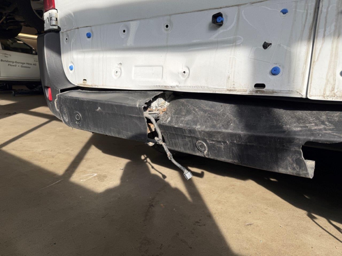 | Schadensbeschreibung | Anprall hinten: Dabei wurde beide Türen mit Abdeckungen, die Stossstange, die PDC-Sensoren mit Kabel, das Heckblech, das Bodenblech, der Längsträger rechts sowie diverse Anbauteile beschädigt. |