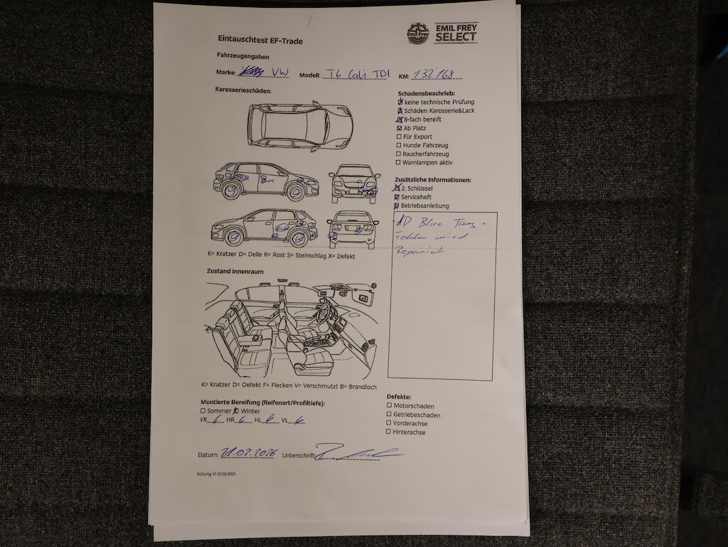 Uszkodzenia Opis uszkodzen: Keine technische Prüfung (Werkstatttest) vorgenommen