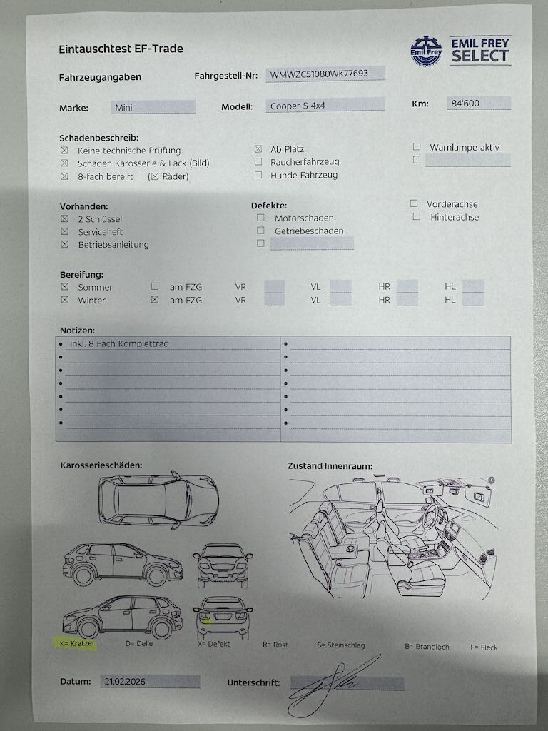 Uszkodzenia Opis uszkodzen: Keine technische Prüfung (Werkstatttest) vorgenommen
