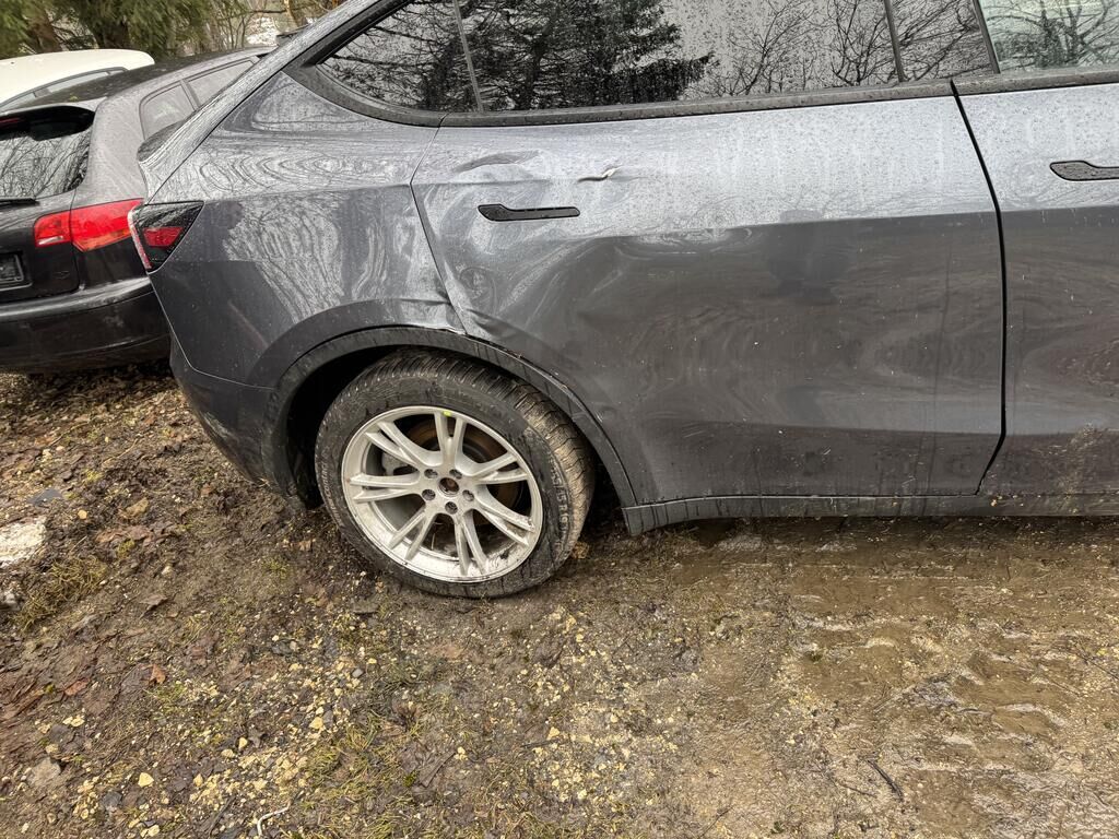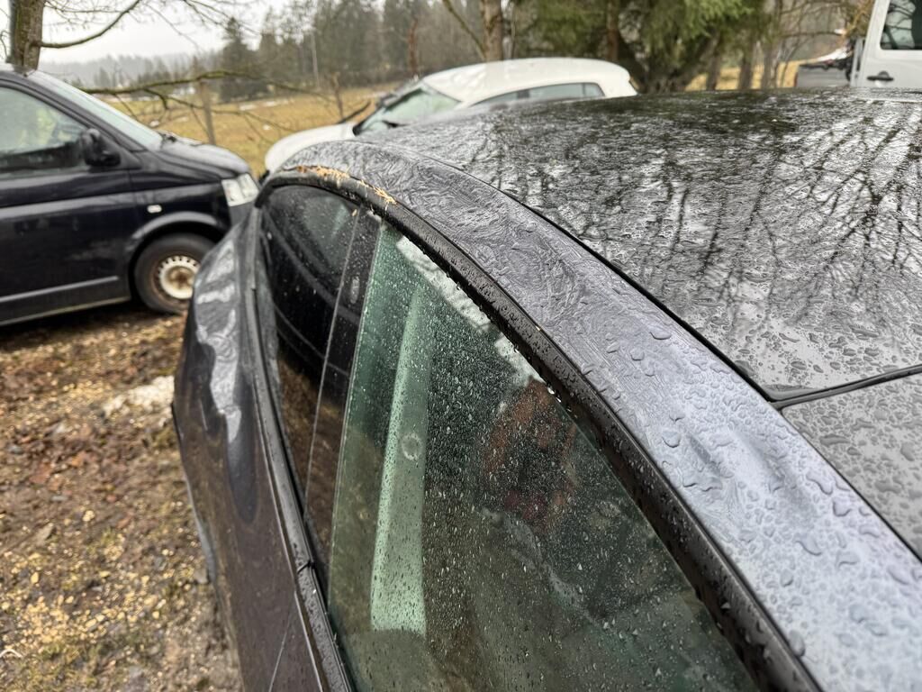 Pare-chocs avant, aile avant, porte avant, porte arrière, rétroviseur, bas de caisse, montant de toit, aile arrière et moyeu de roue arrière