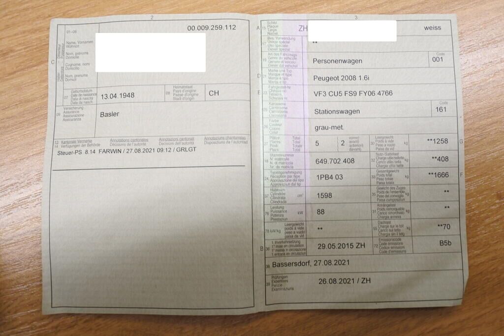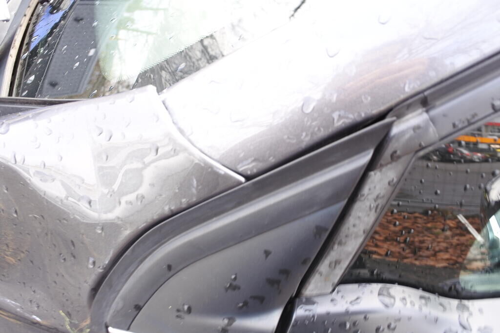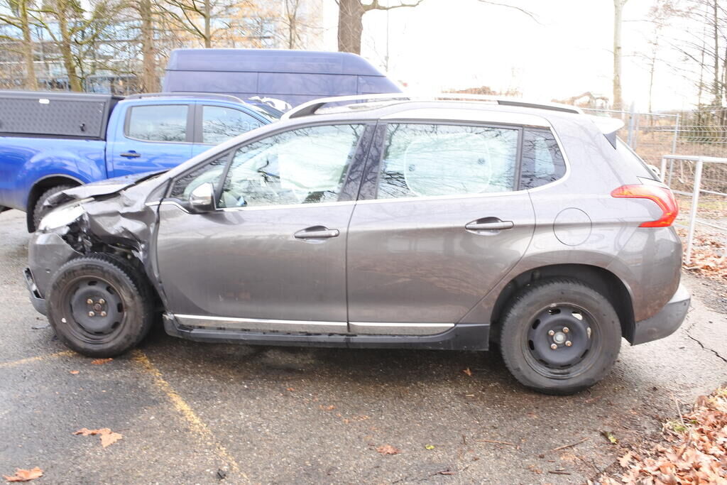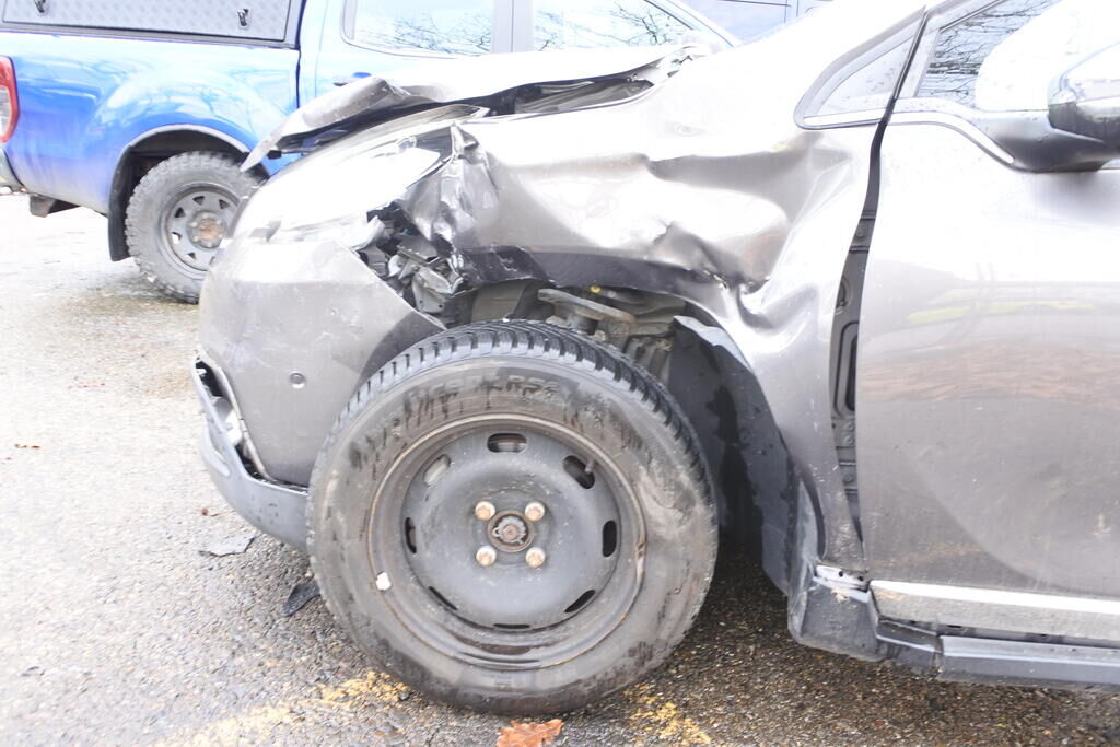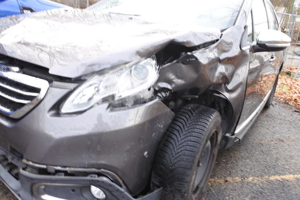 Die Stossstange mit Anbau-Zier-Verstärkungs-und befestigungsteilen, der Scheinwerfer mit Brillenblech, die Motorhaube mit Scharnieren, der Kotflügel mit Auskleidung und Befestigungen, das Radhaus sowie die Spritzwand im Bereich der A-Seule inkl. der Felge und deren Aufhängung sind beschädigt. Der Wagenvorderbau ist nach rechts verschoben, Der Seiten - und Kopfairbag sowie der Gurtenstraffer links wurden ausgelöst.