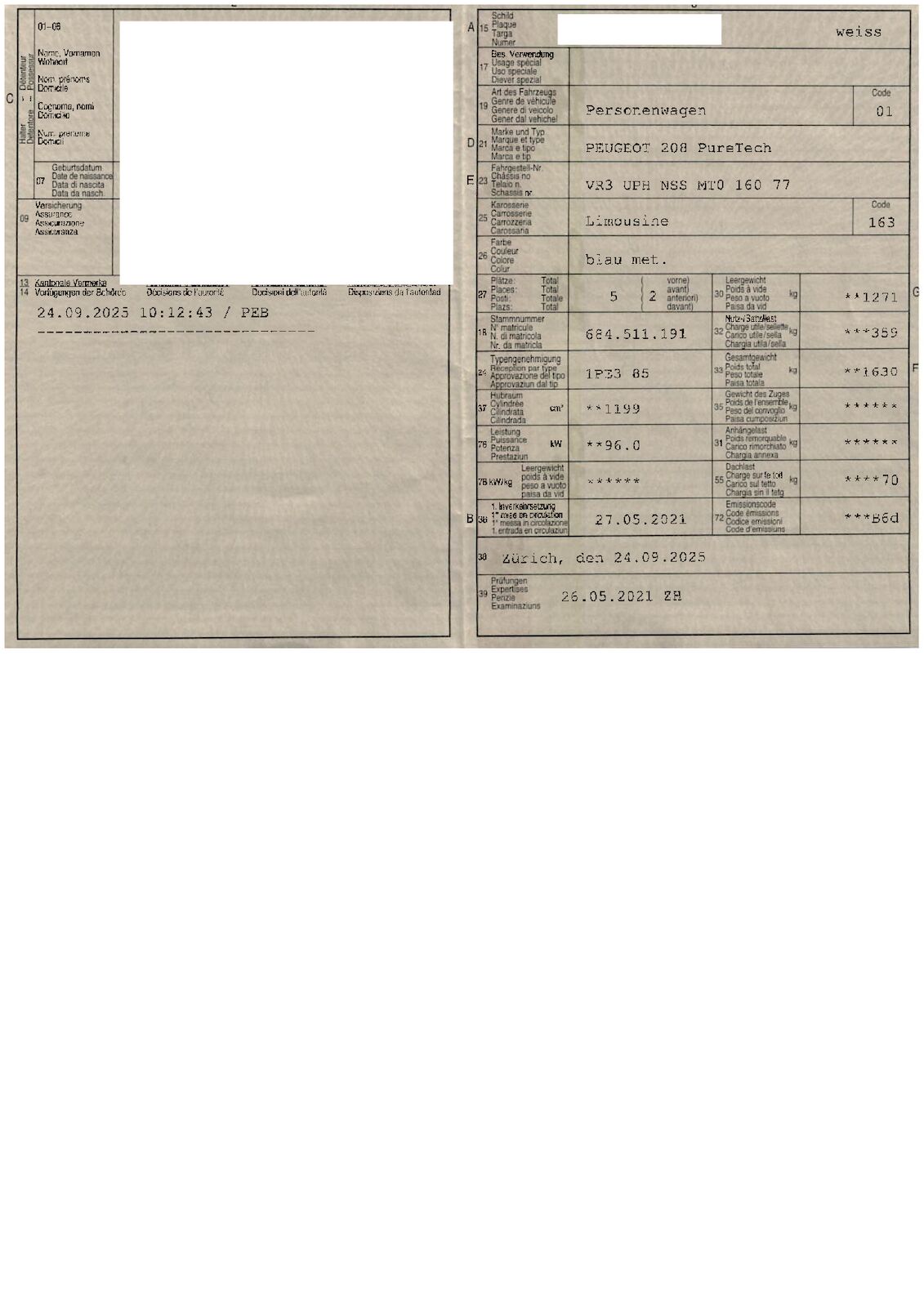| Konstrukcja: | PKW / Limousine / 5 |